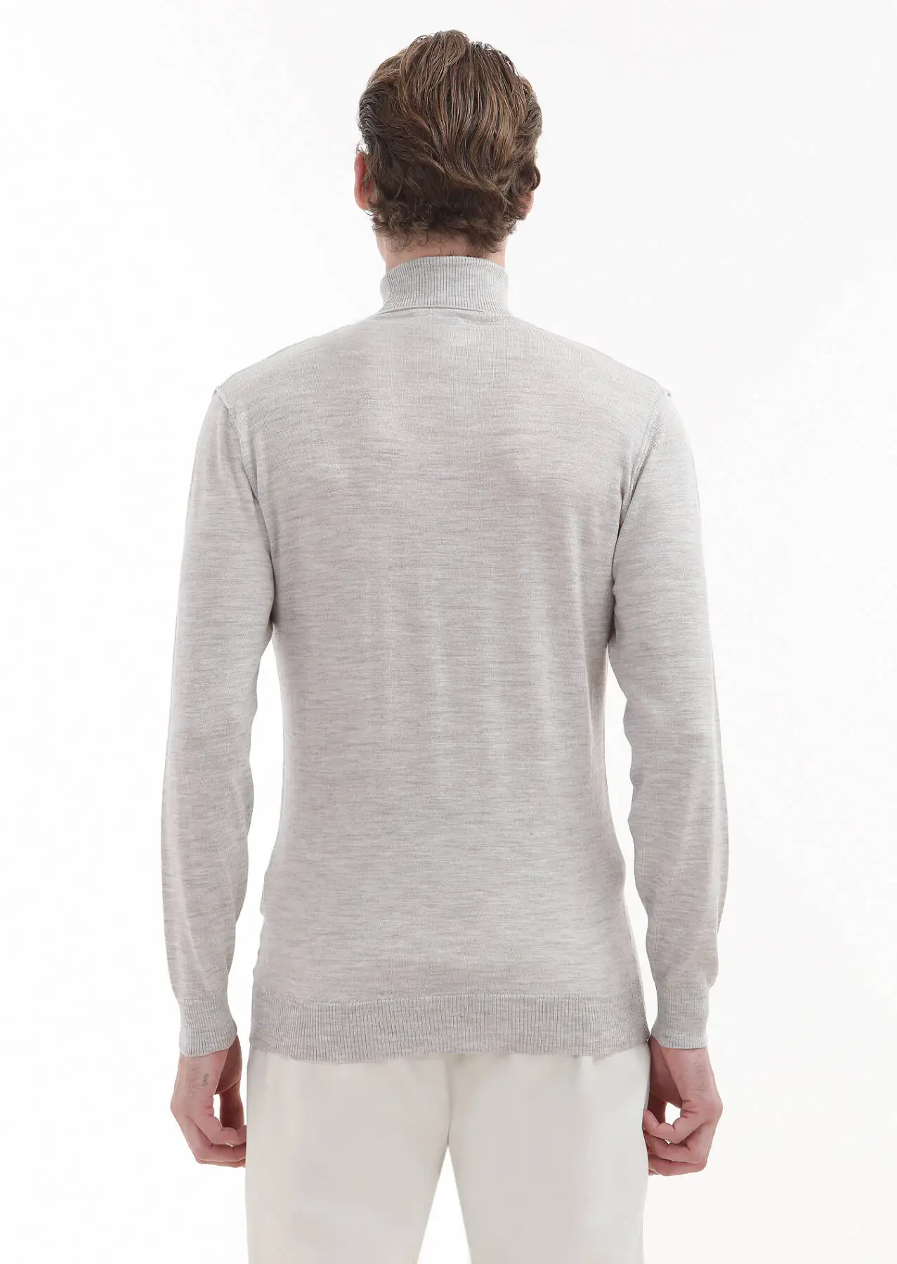 Açık Bej Tam Balıkçı Yaka Düz Örgü %100 Yün Triko Kazak