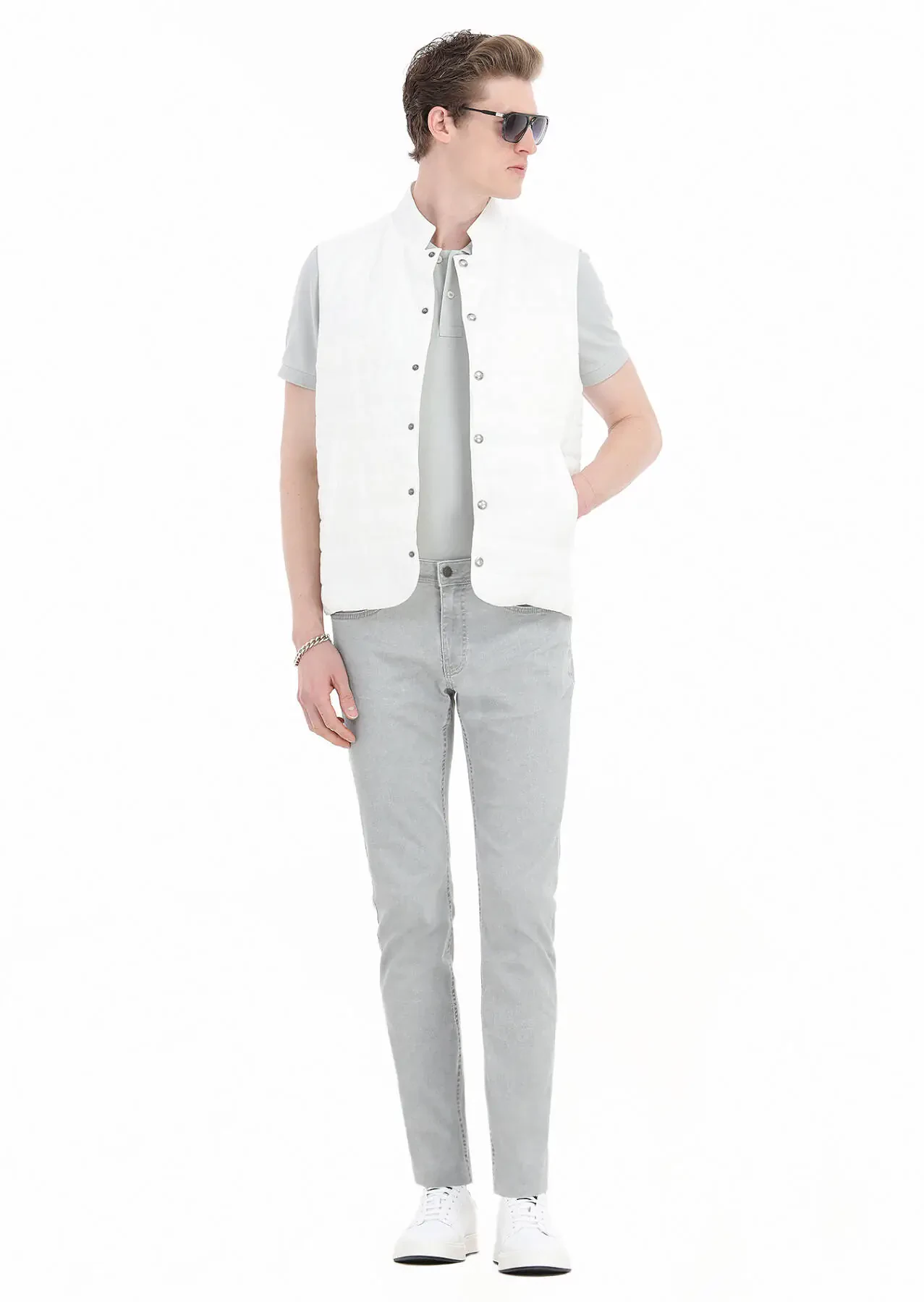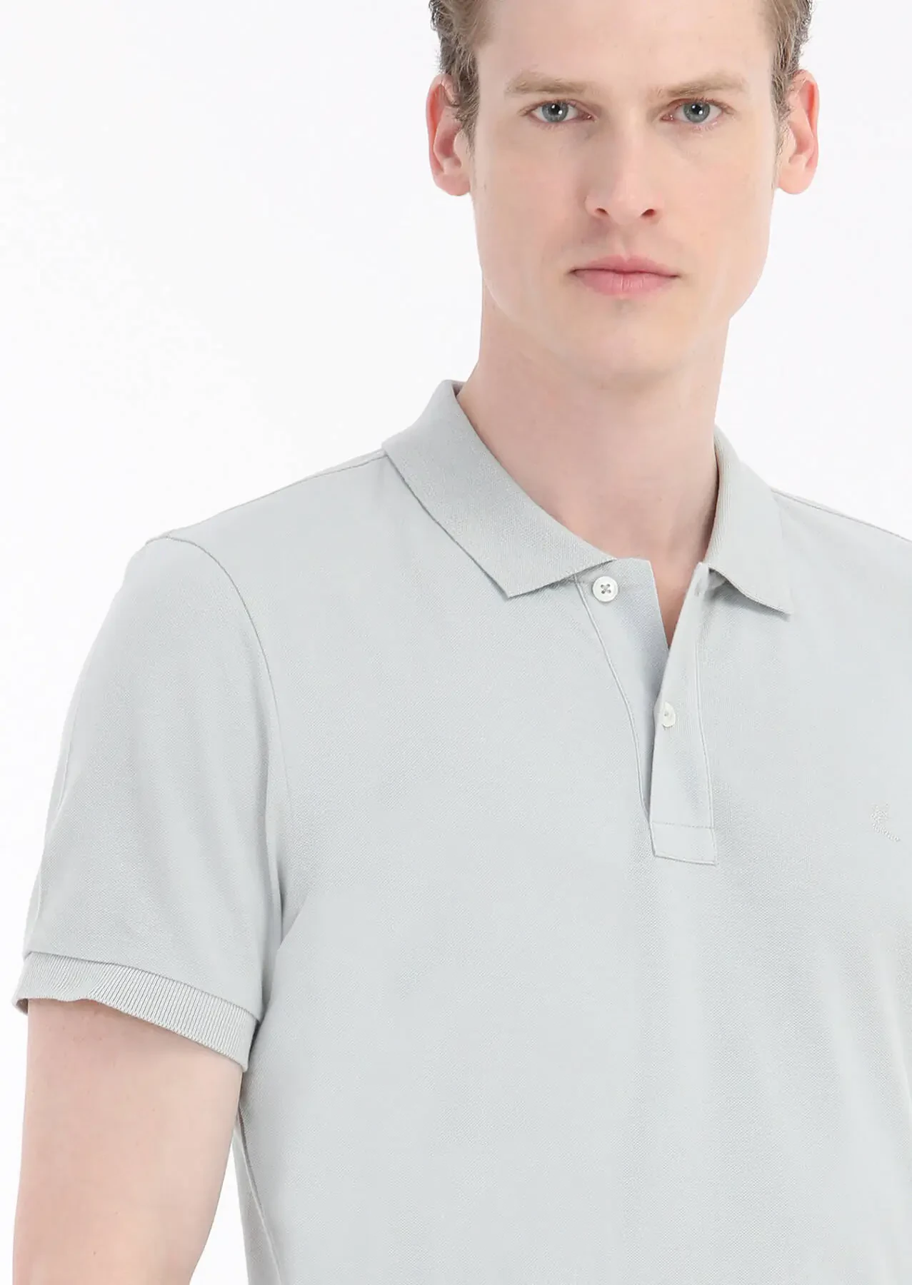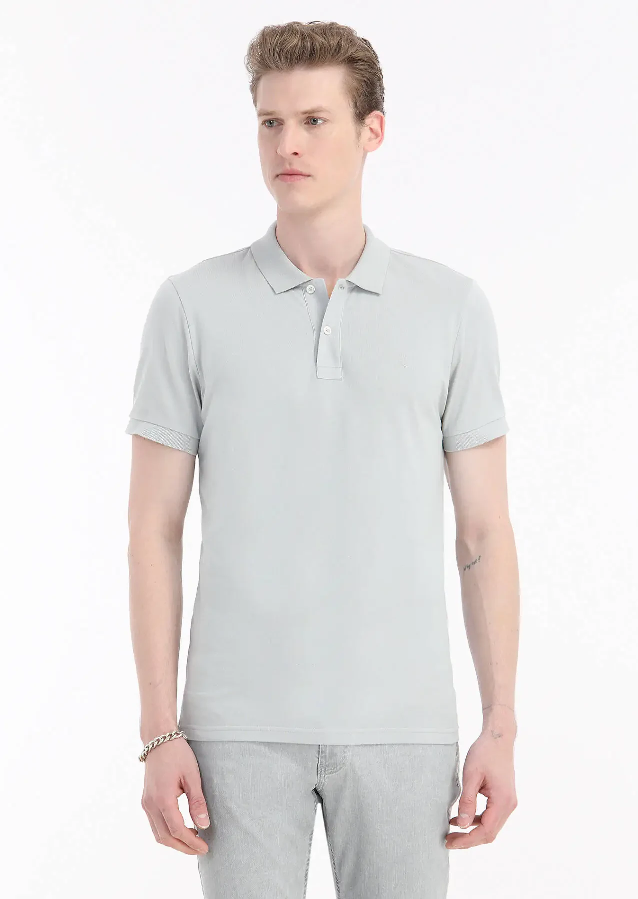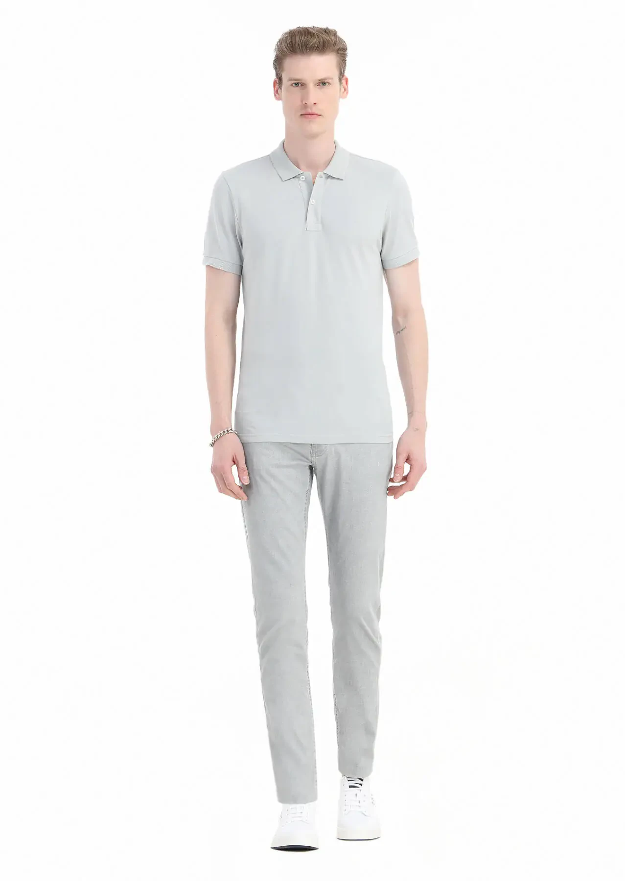 Açık Gri Baskılı Polo Yaka %100 Pamuk T-Shirt