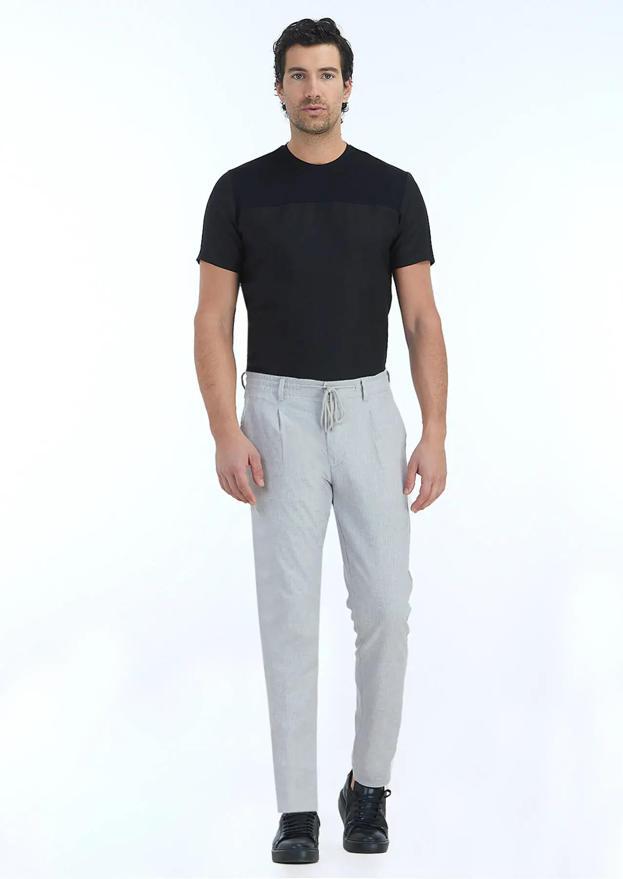 Açık Gri Çizgili Dokuma Jogging Fit Casual Pamuk Karışımlı Pantolon