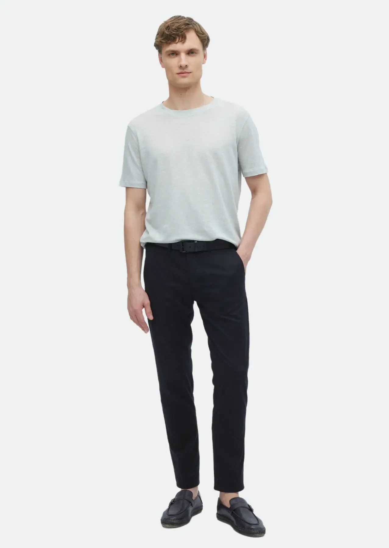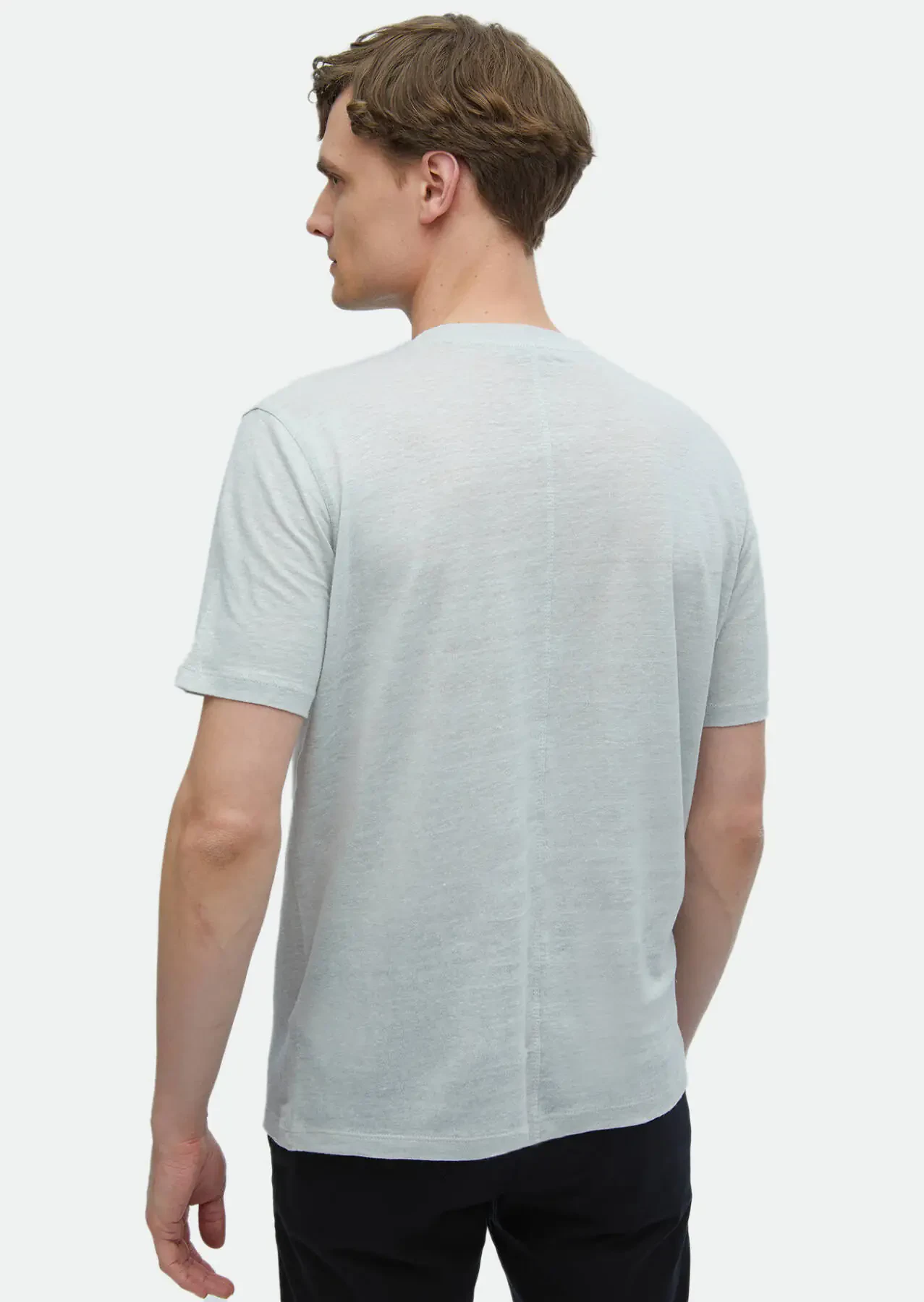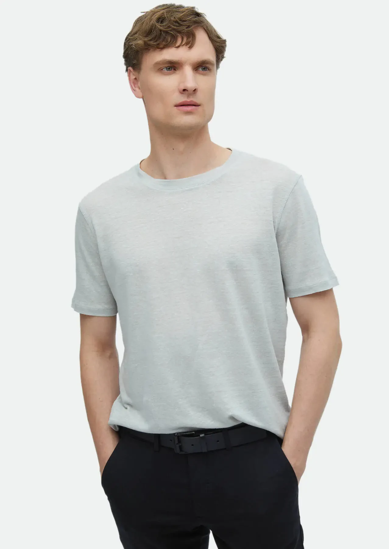Açık Gri Düz Bisiklet Yaka %100 Keten T-Shirt