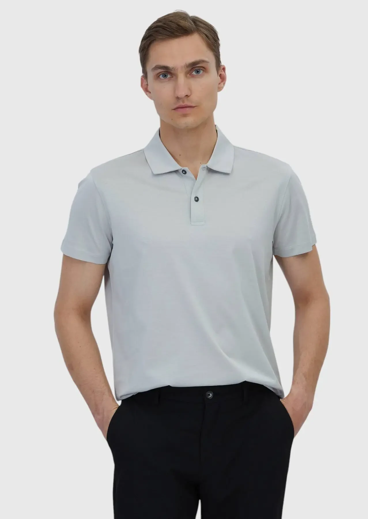 Açık Gri Düz Polo Yaka %100 Pamuk T-Shirt