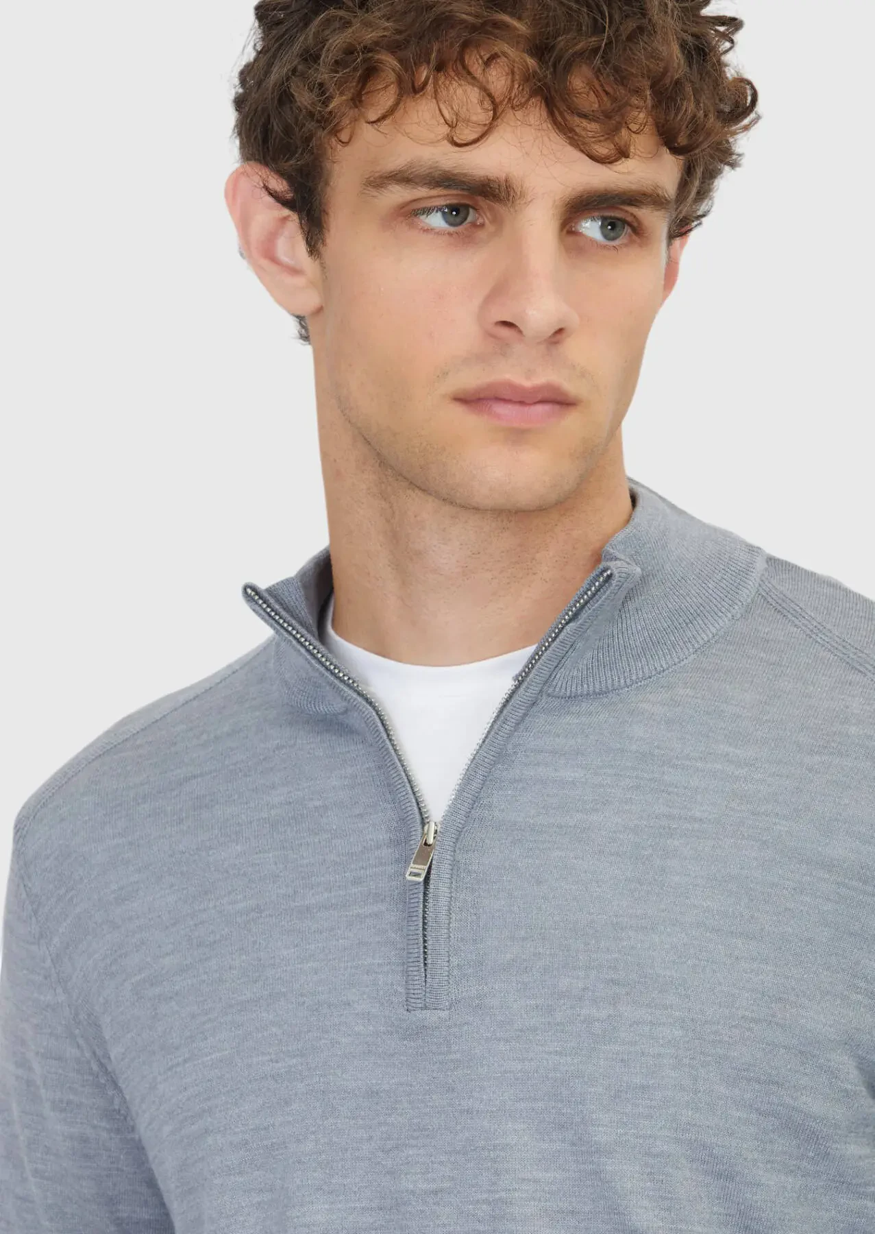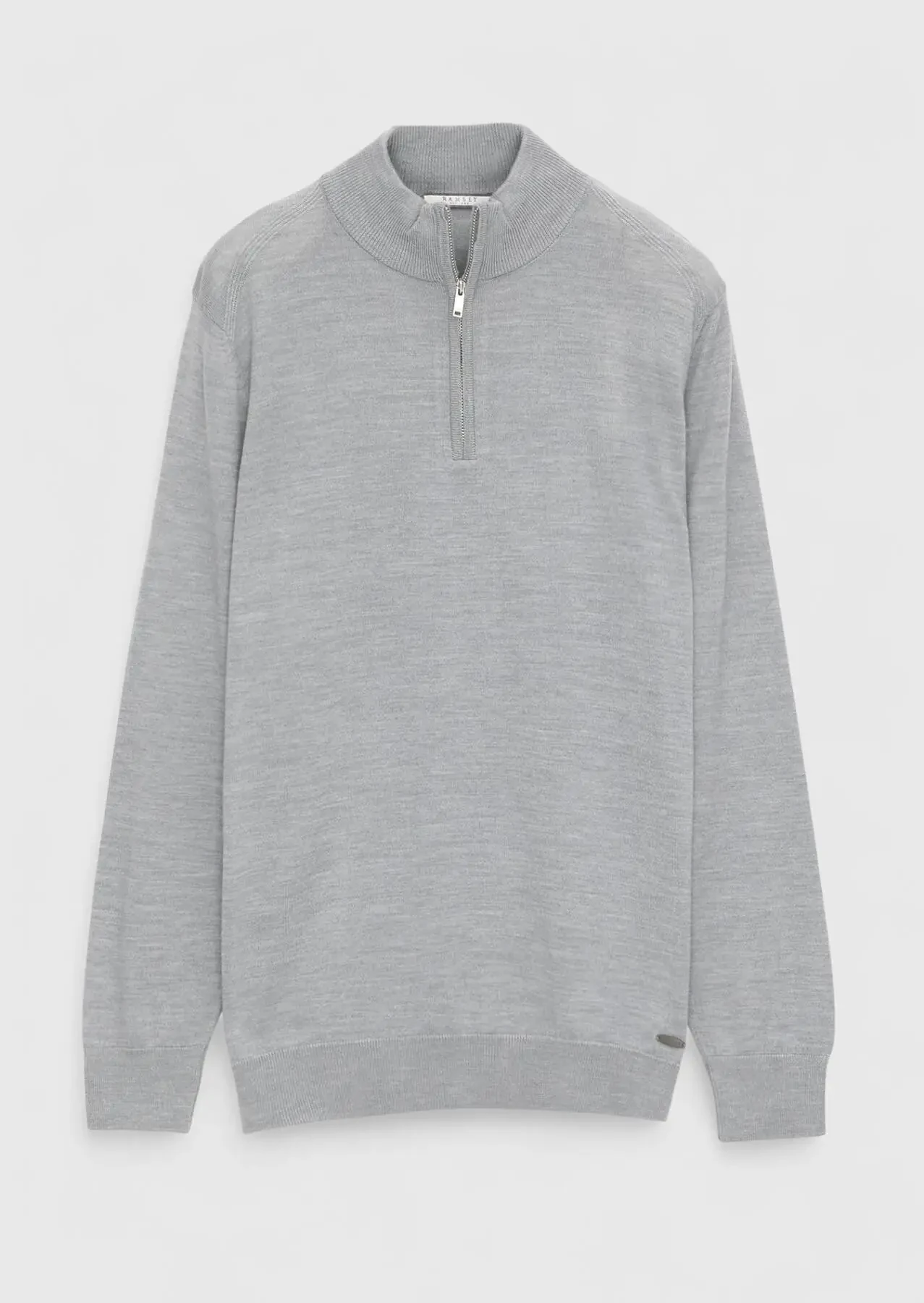 Açık Gri Yarım Balıkçı Yaka Düz Örgü Yün Karışımlı Triko Kazak