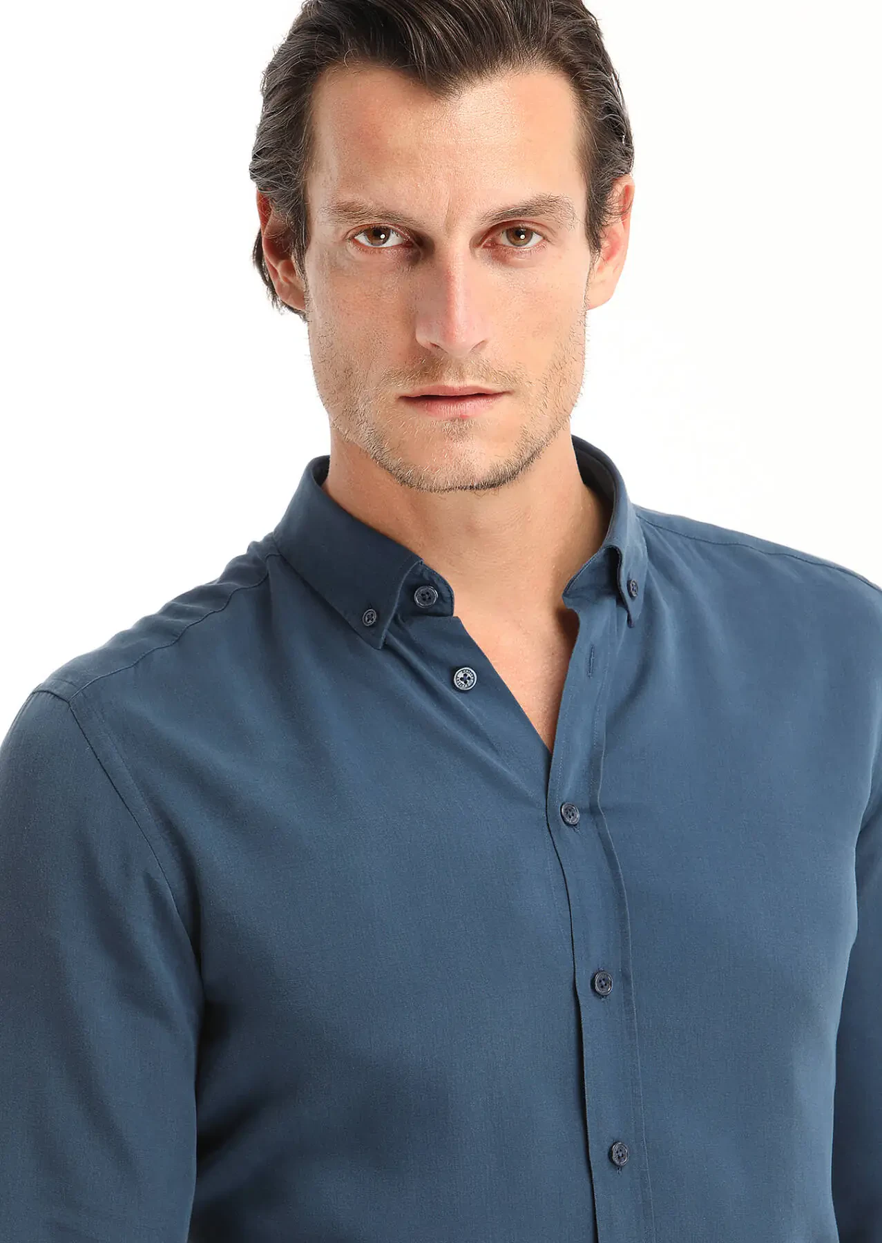 Açık İndigo Düz Regular Fit Dokuma Casual Gömlek