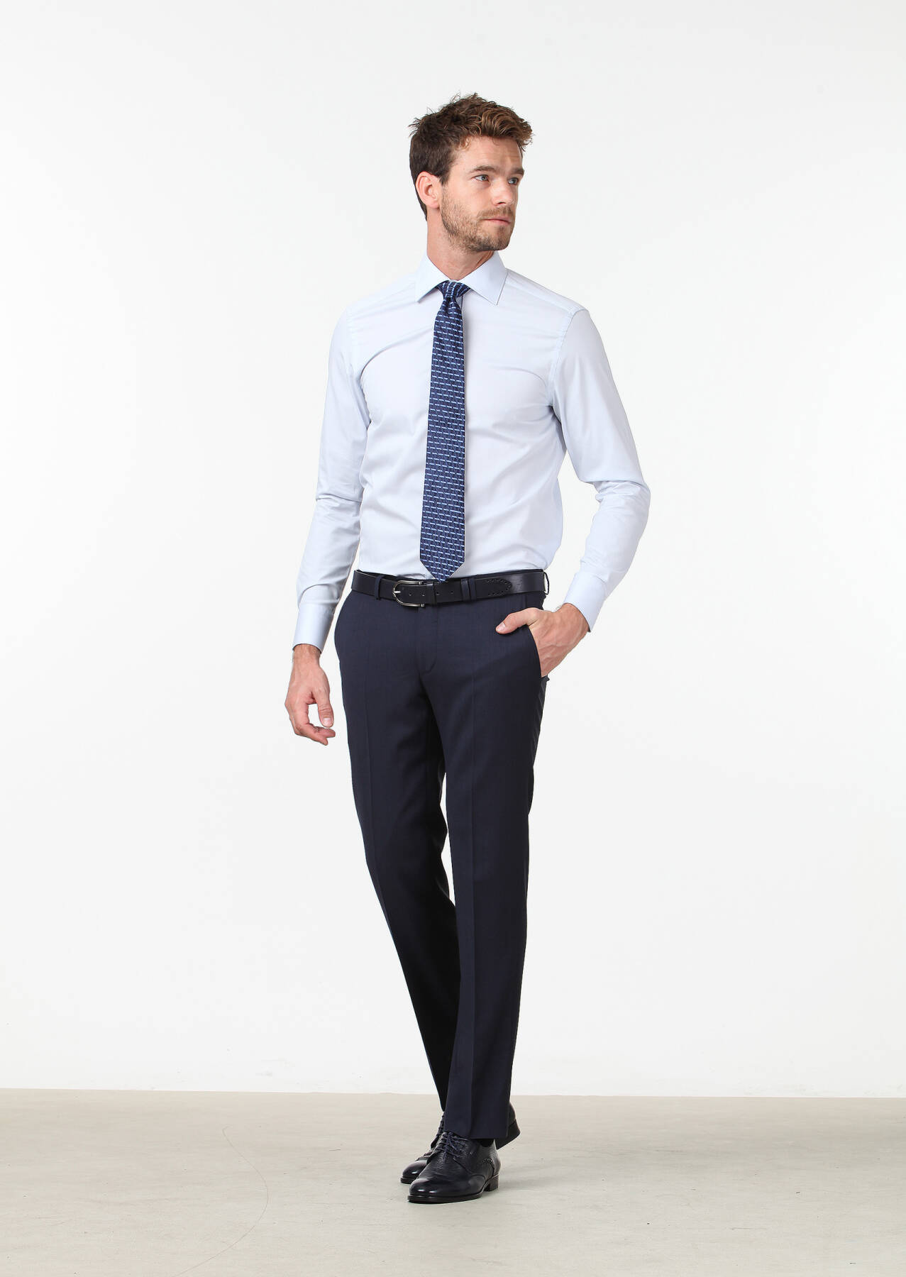 Açık Mavi Düz Regular Fit Dokuma Klasik Pamuk Karışımlı Gömlek