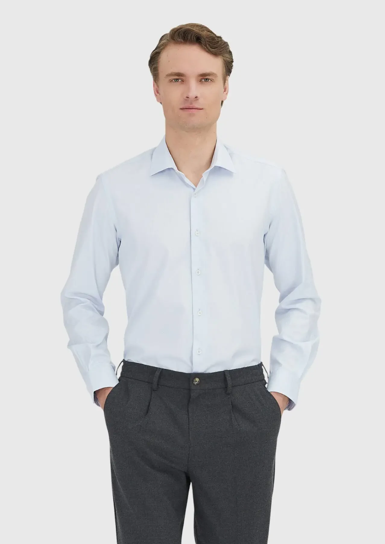 Açık Mavi Regular Fit Dokuma Klasik %100 Pamuk Gömlek