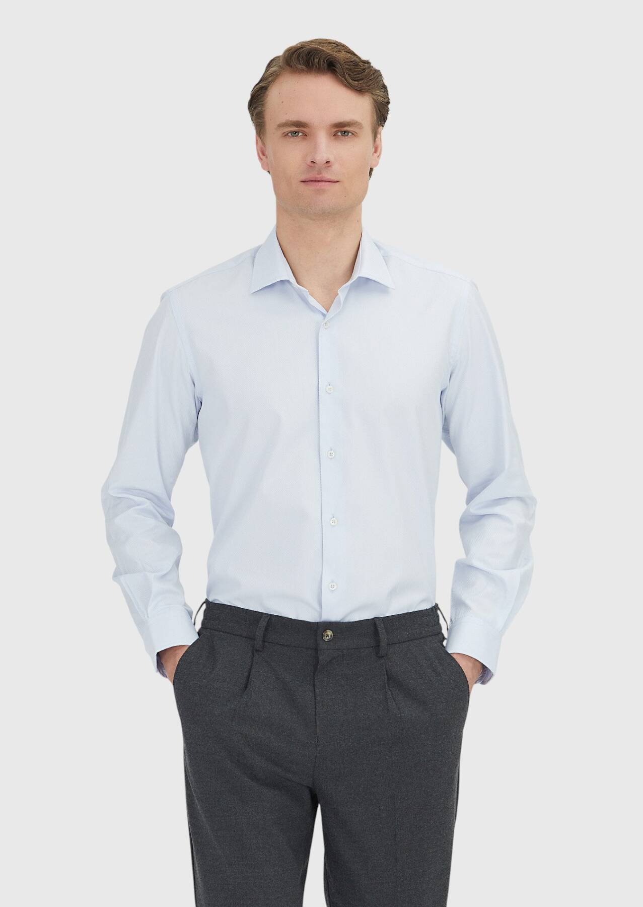 Açık Mavi Regular Fit Uzun Dokuma Klasik %100 Pamuk Gömlek