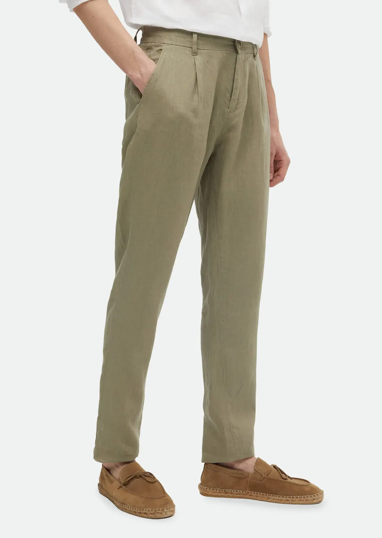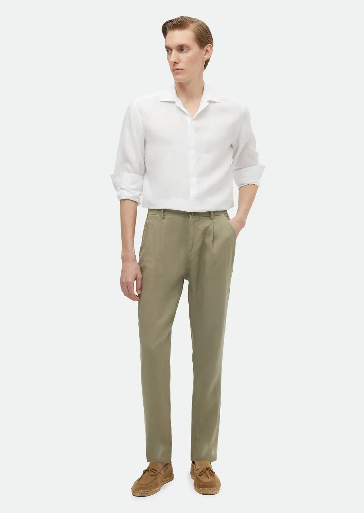 Açık Yeşil Düz Dokuma Jogging Fit Casual %100 Keten Pantolon