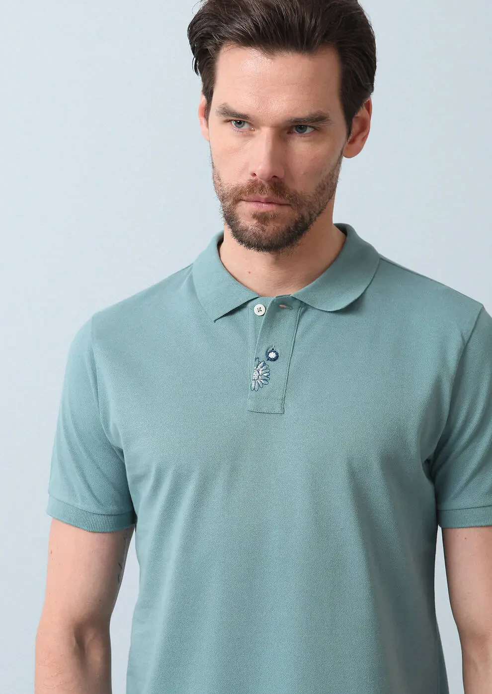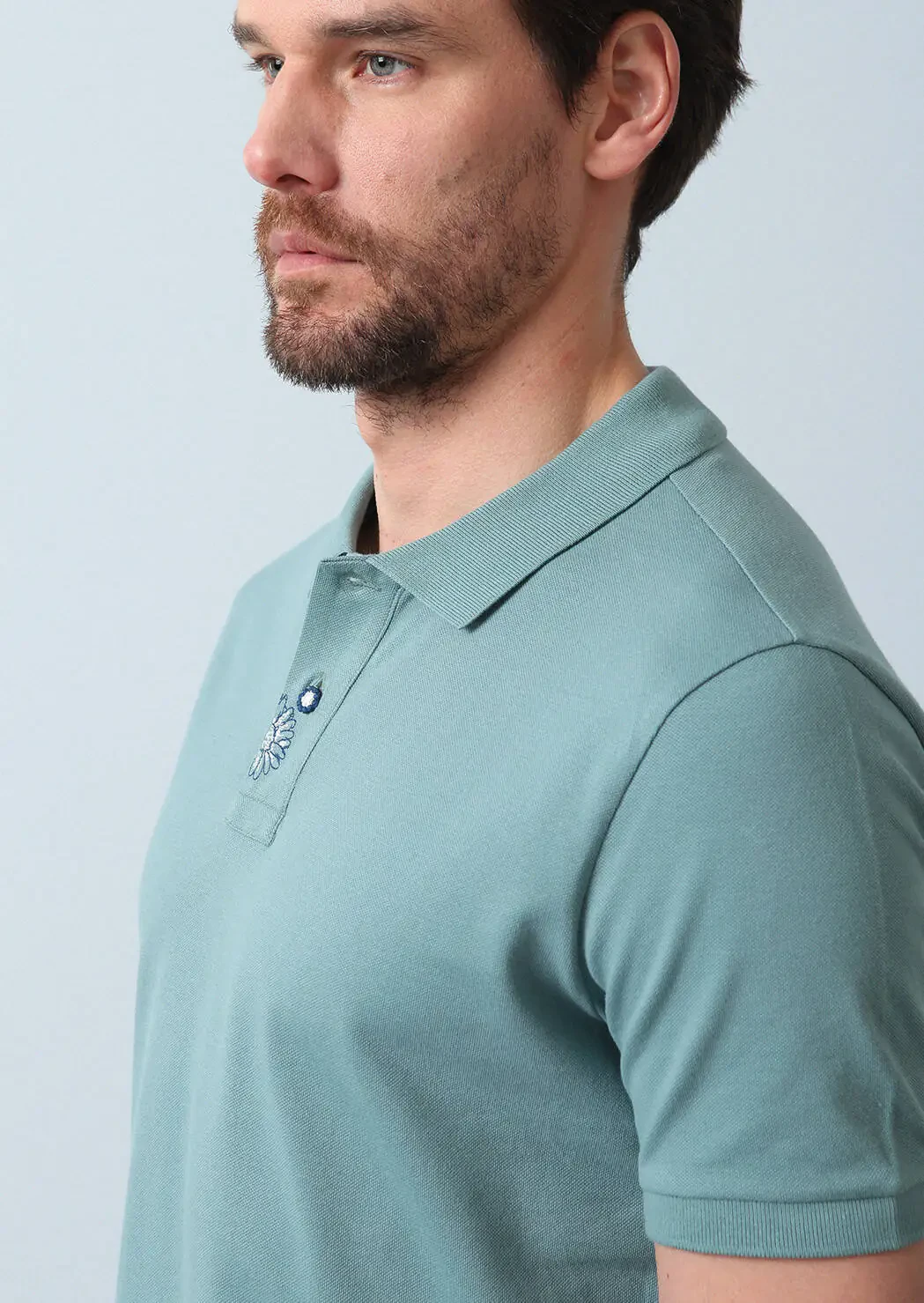 Light Green Polo Neck 100% Cotton T-Shirt