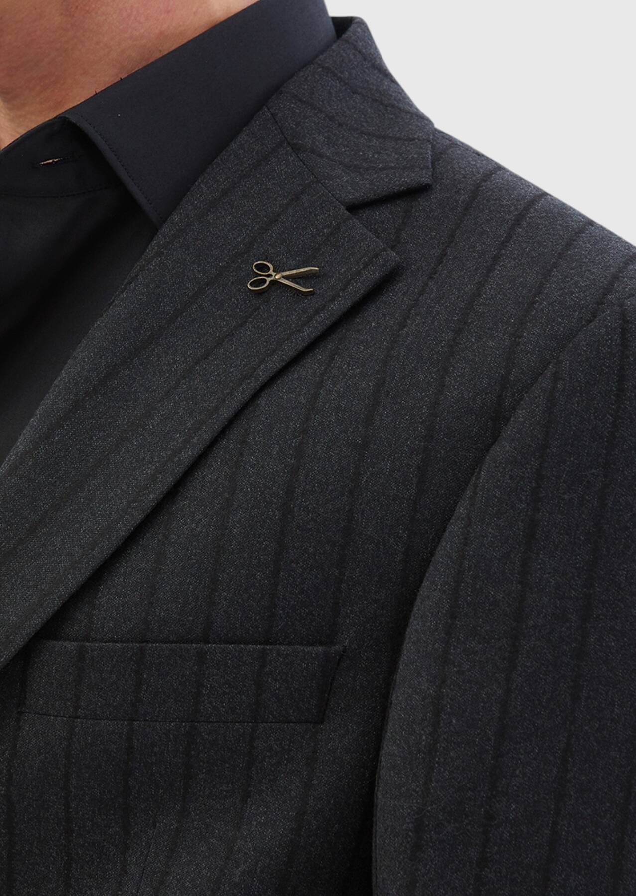 Antrasit Çizgili Zeroweight Slim Fit %100 Yün Takım Elbise
