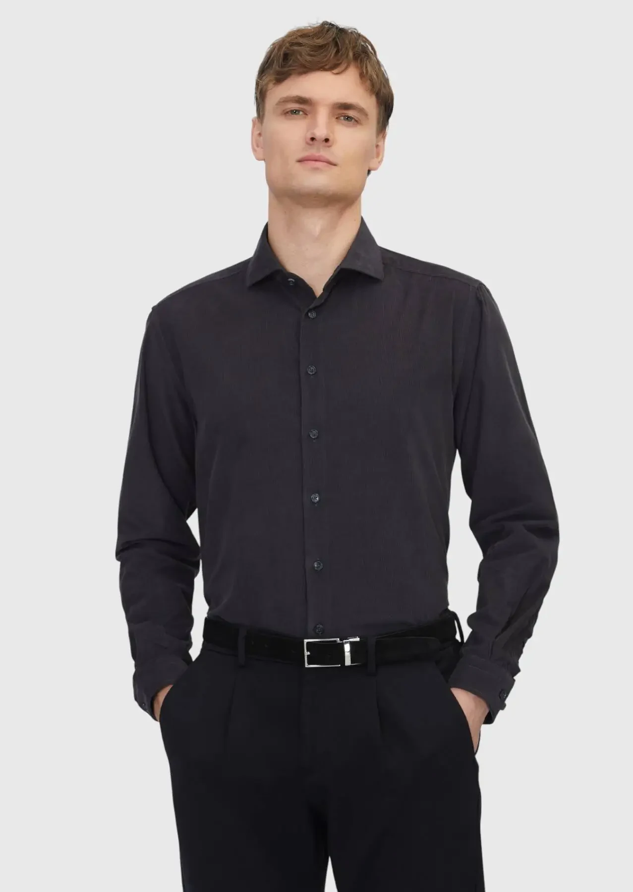 Antrasit Düz Dokuma Kadife Casual %100 Pamuk Gömlek