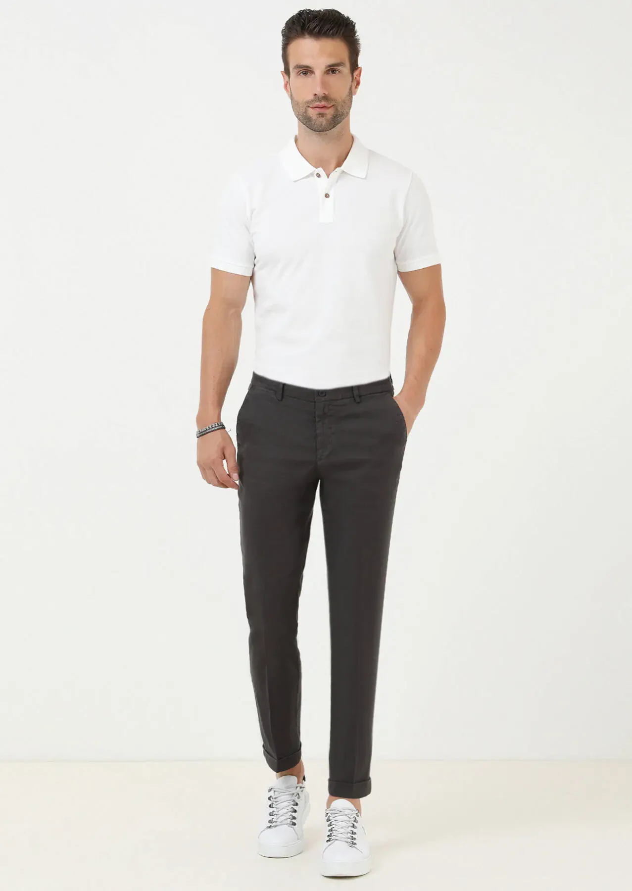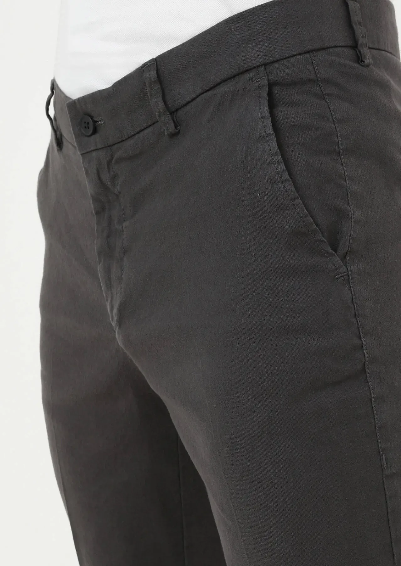 Antrasit Düz Dokuma Regular Fit Casual Pamuk Karışımlı Pantolon