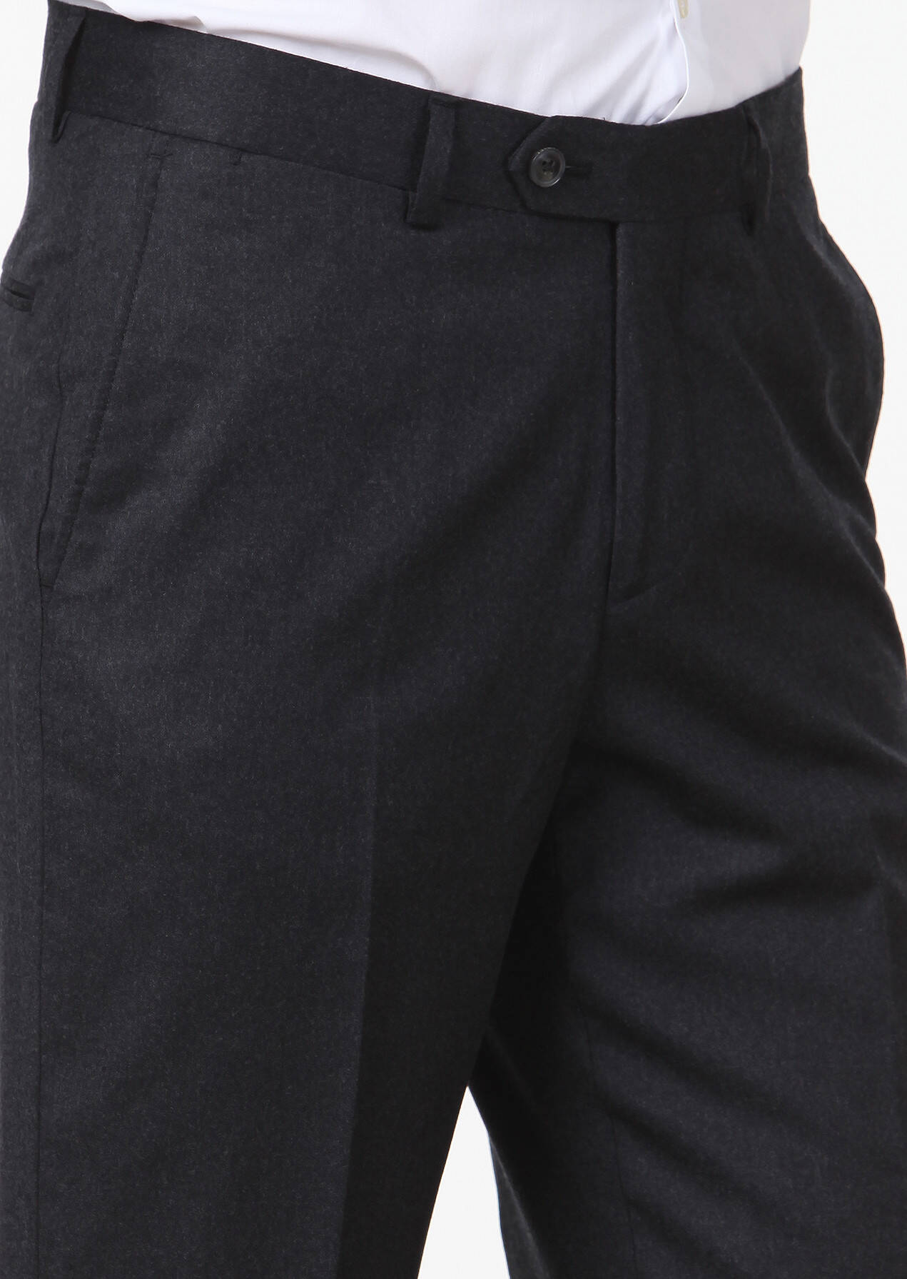 Antrasit Düz Dokuma Regular Fit Klasik %100 Yün Pantolon
