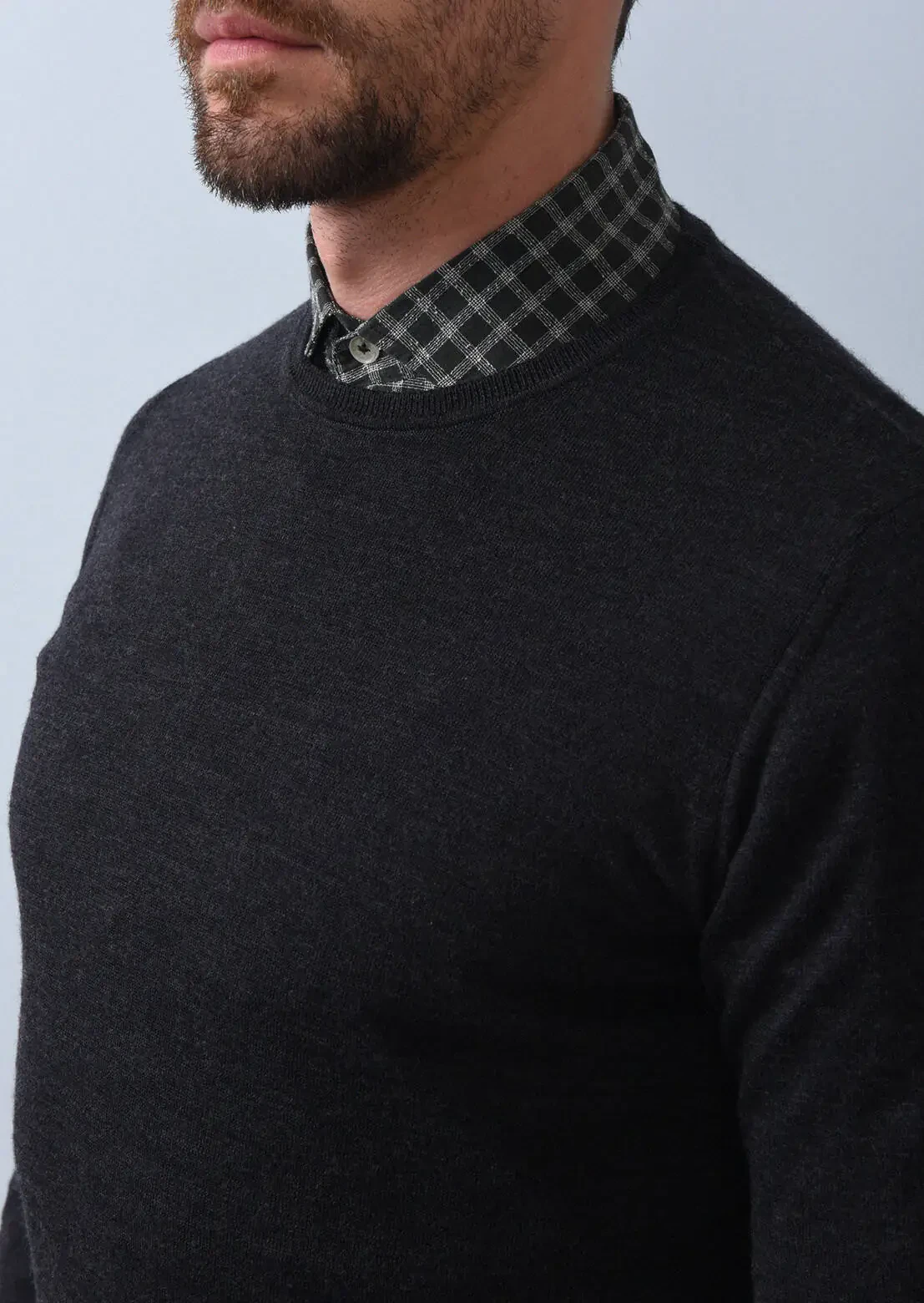 Antrasit Düz Örgü %100 Yün Triko Kazak