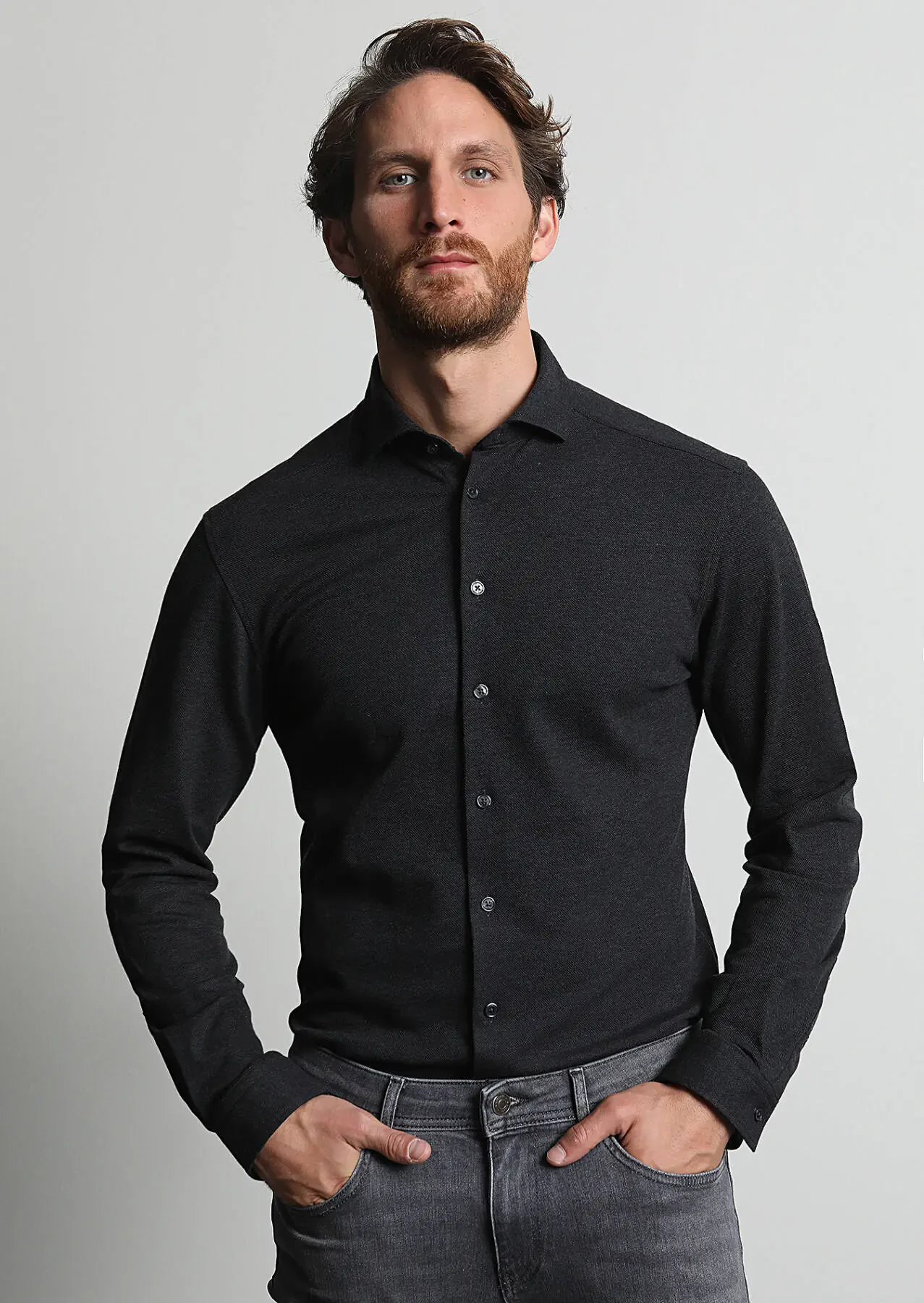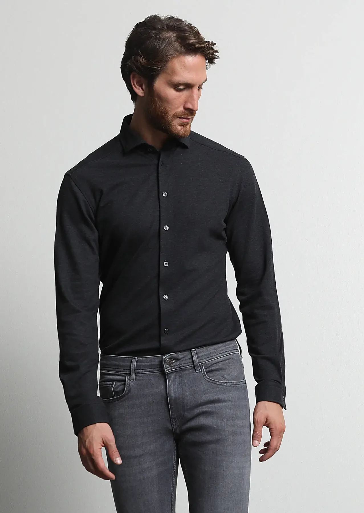 Antrasit Fitted Fit Casual %100 Pamuk Gömlek