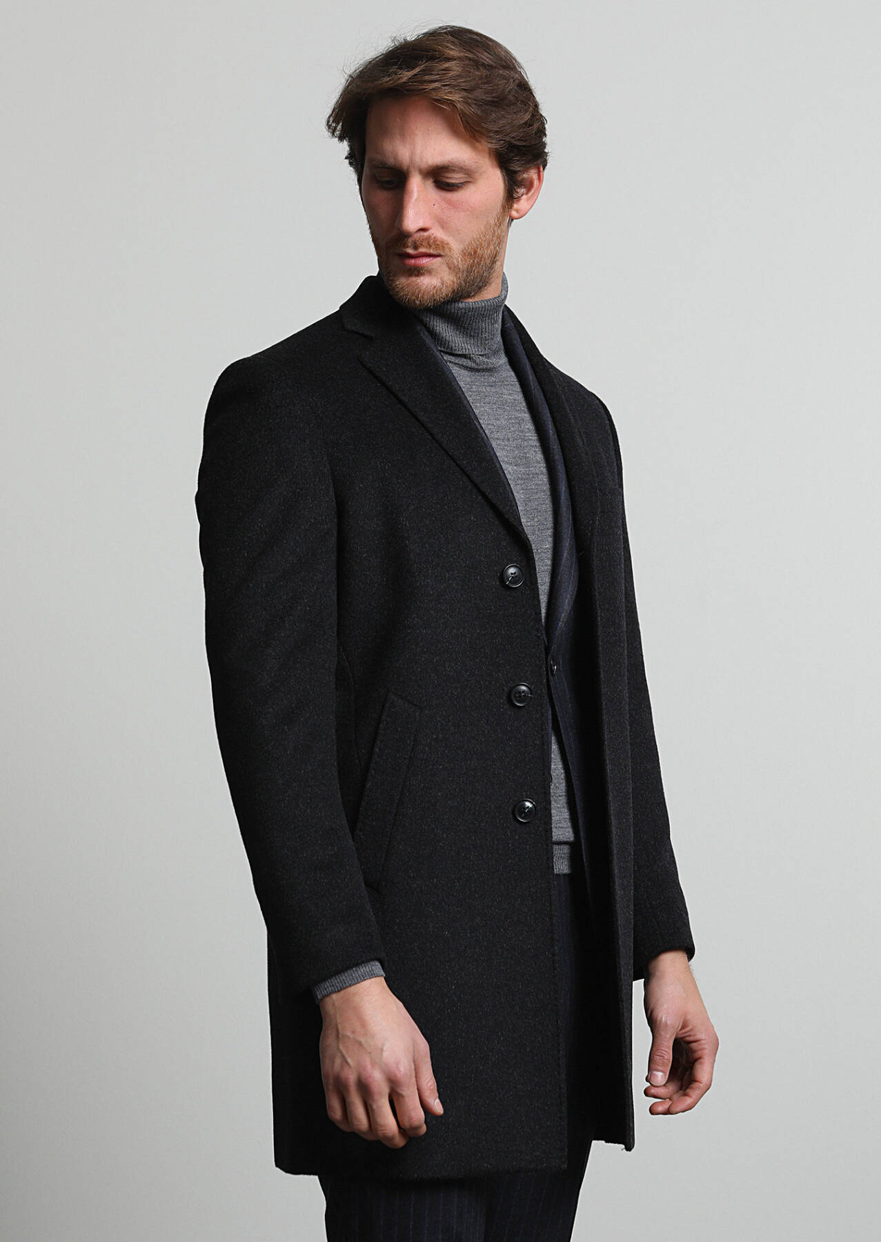 Antrasit Regular Fit Kelebek Yaka Klasik Dokuma Palto