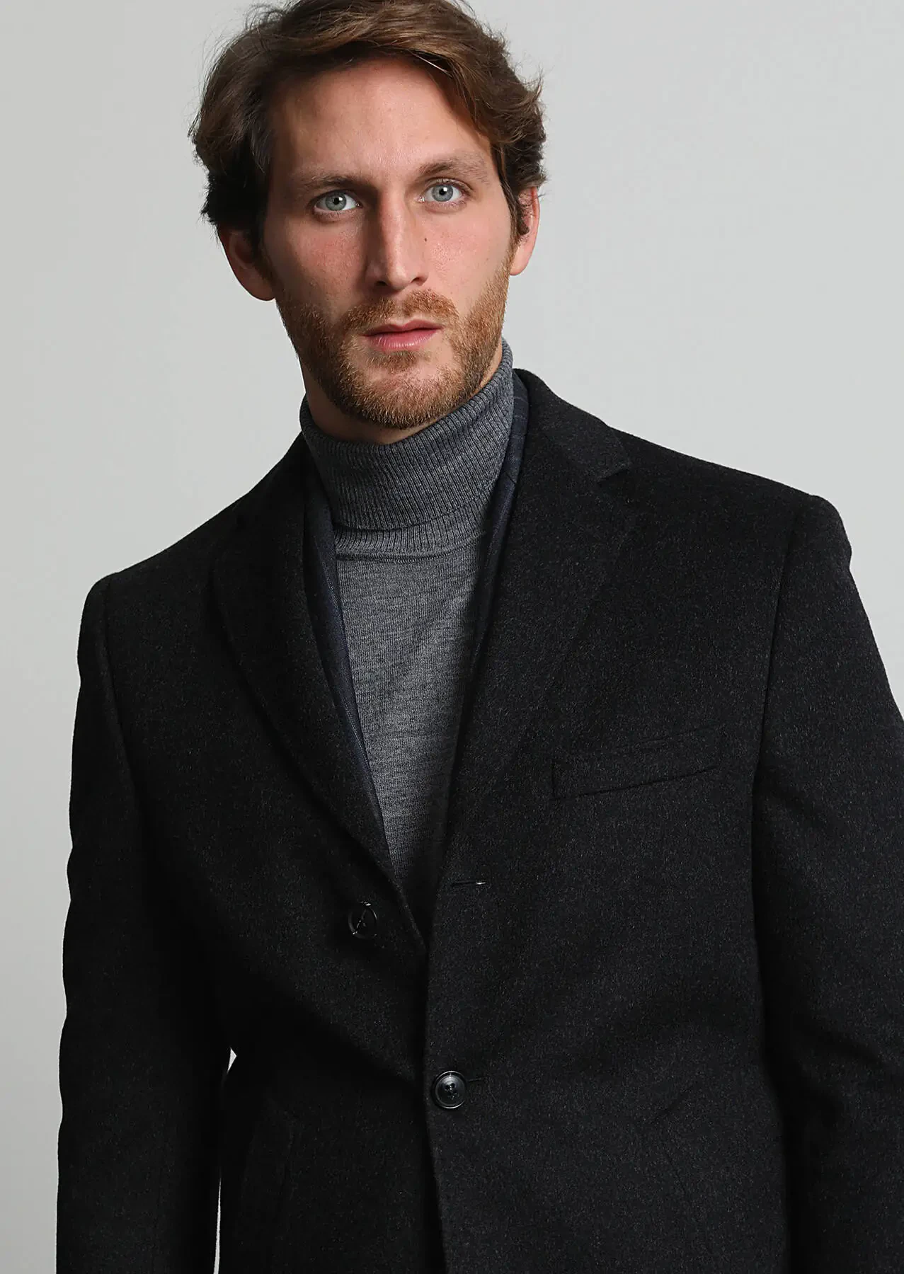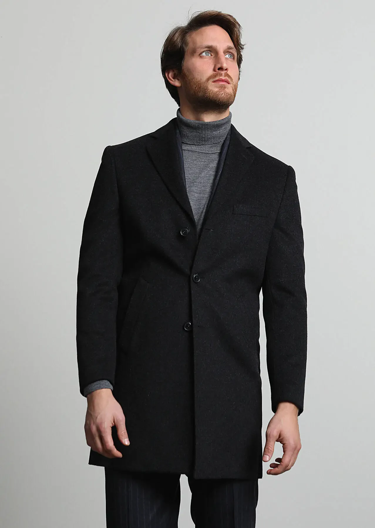 Antrasit Regular Fit Kelebek Yaka Klasik Dokuma Palto