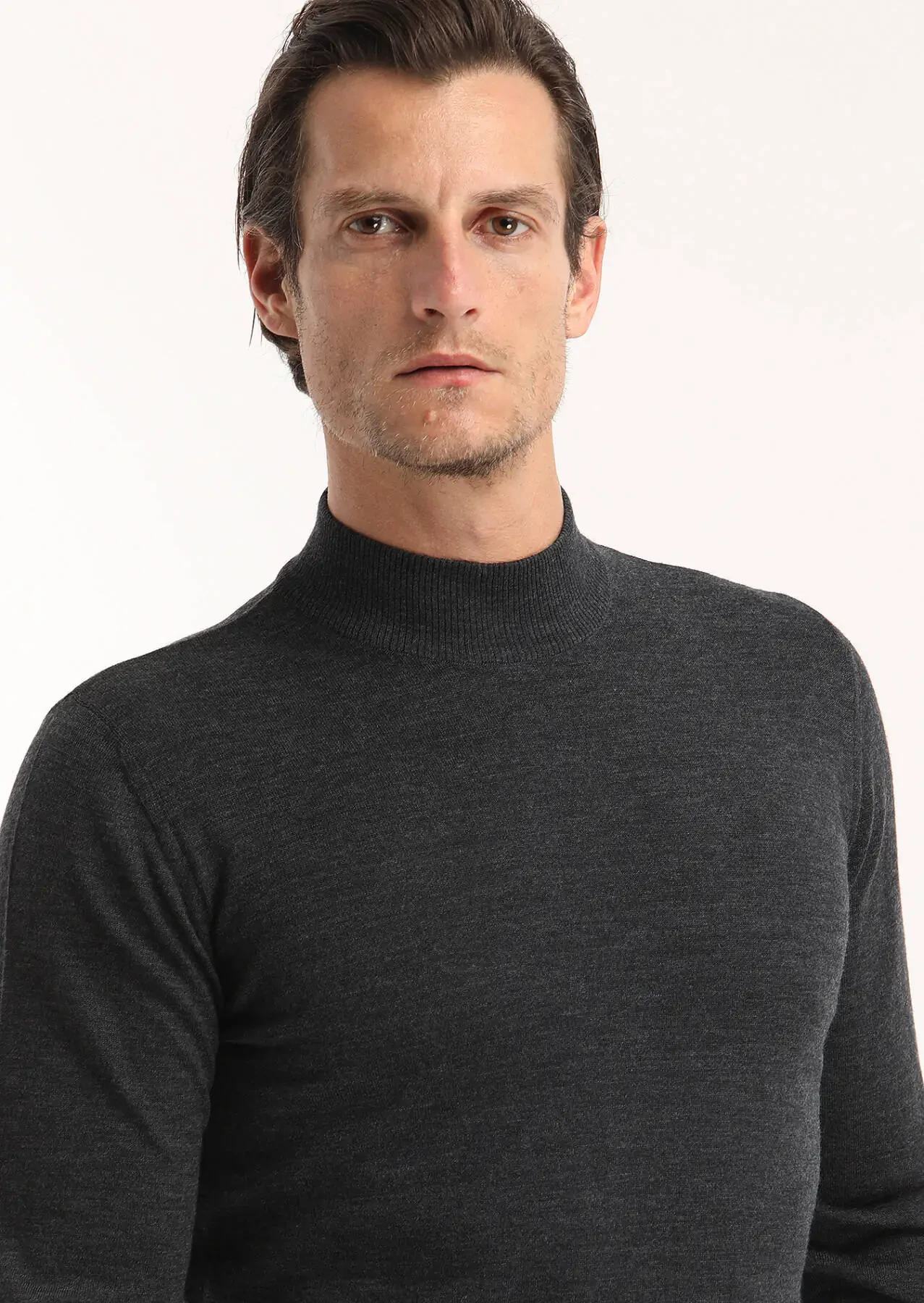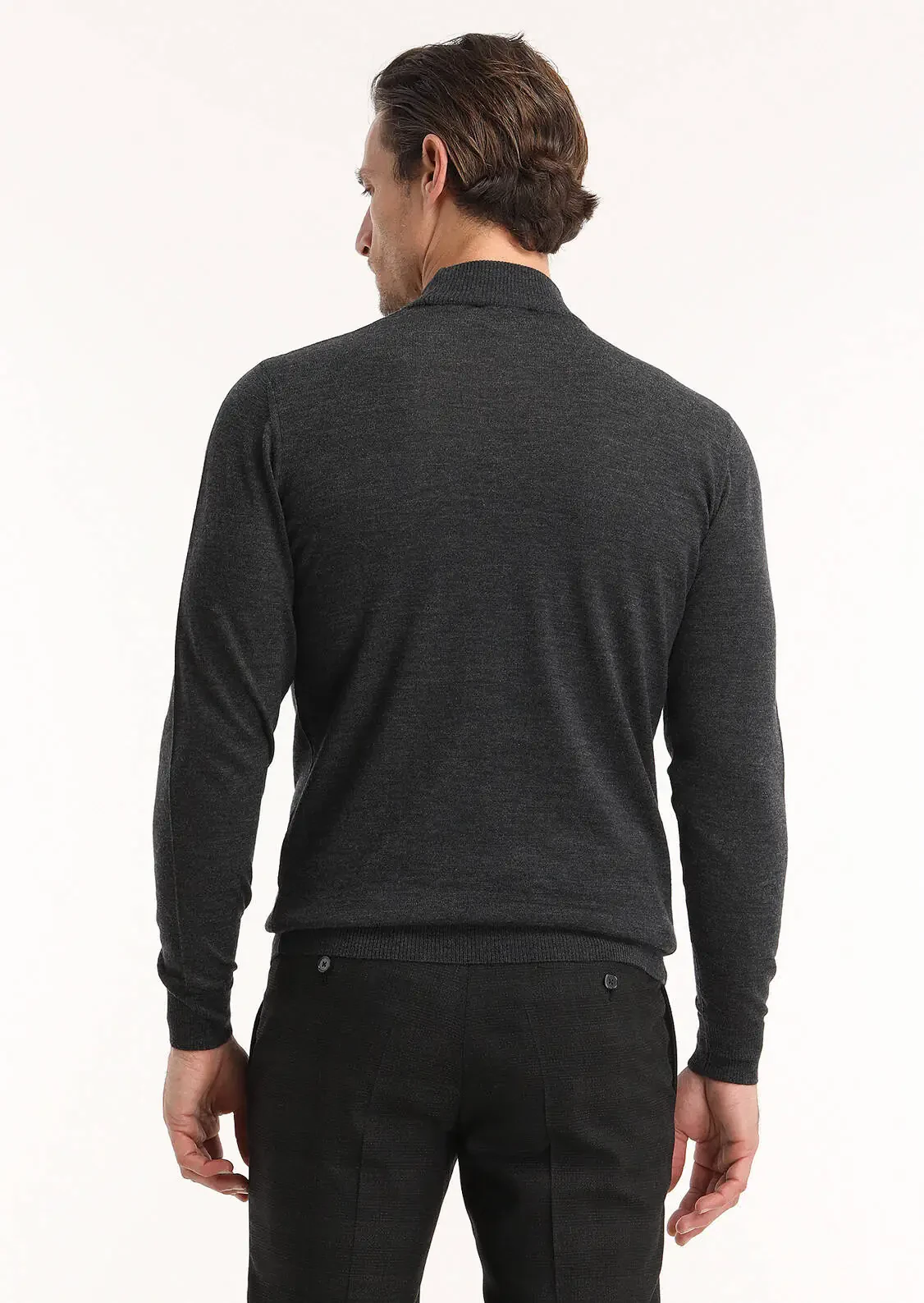 Antrasit Yarım Balıkçı Yaka Düz Örgü %100 Yün Triko Kazak
