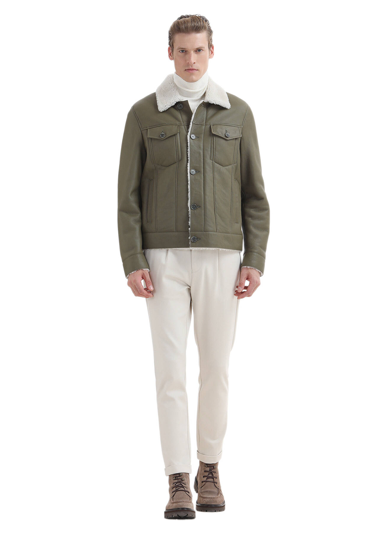 Model: Height: 190 cm, Chest: 94 cm, Waist: 76 cm, Size: 32