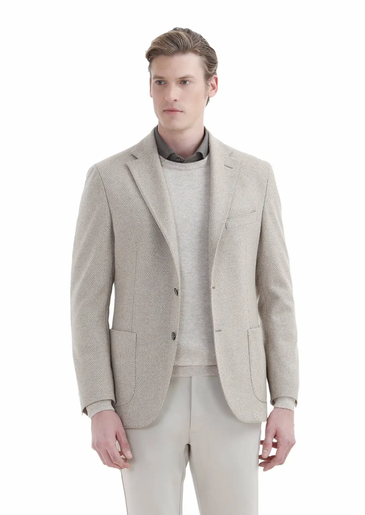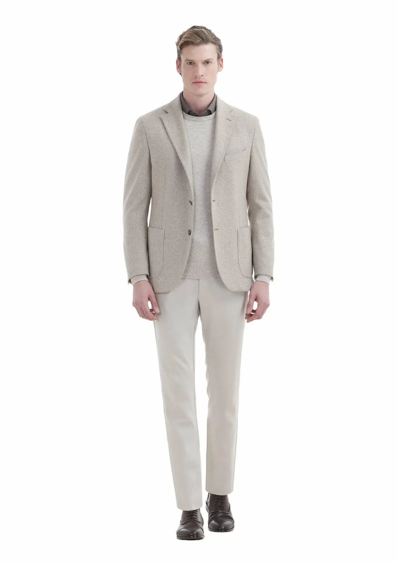Model: Height: 190 cm, Chest: 94 cm, Waist: 76 cm, Size: 48