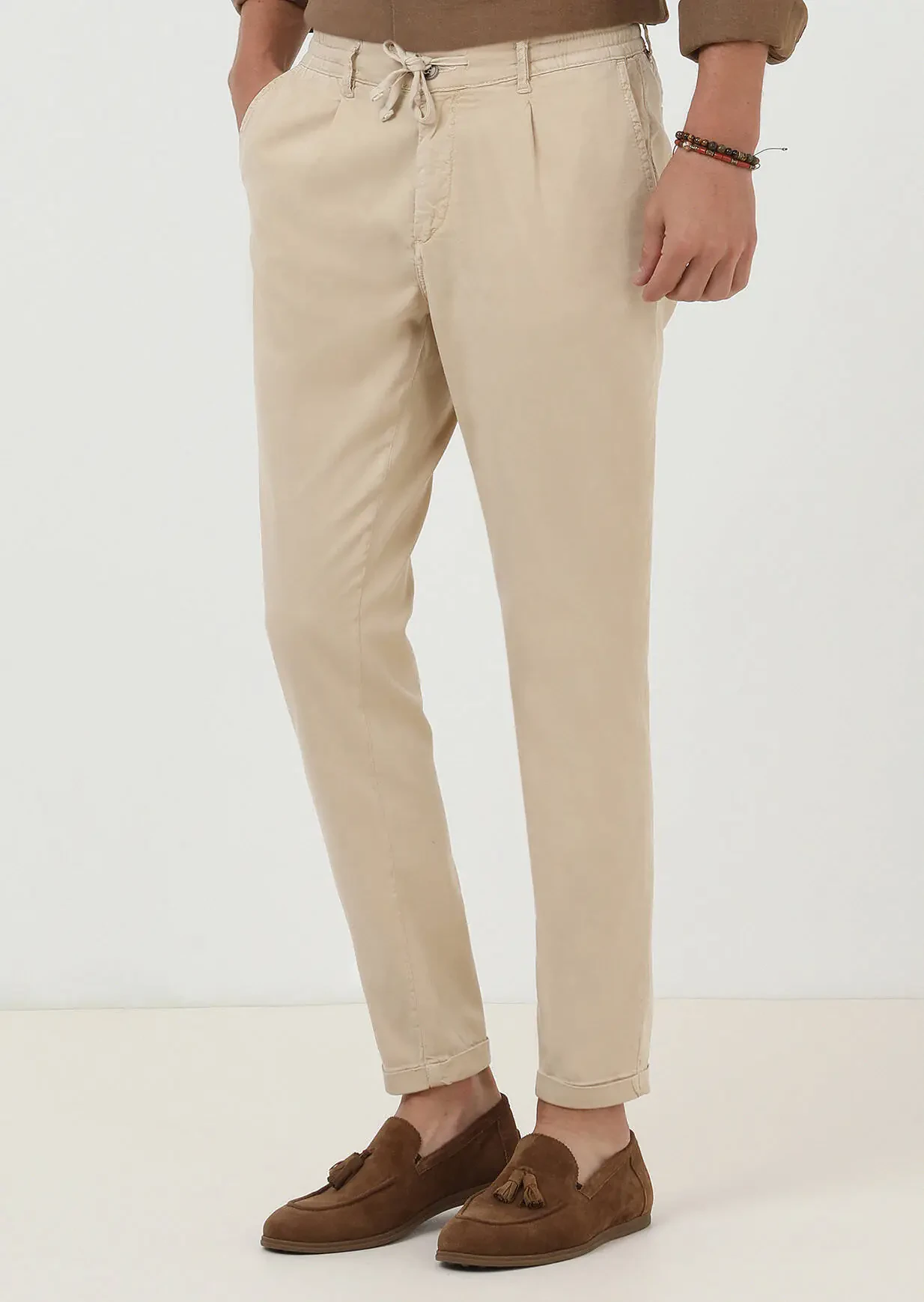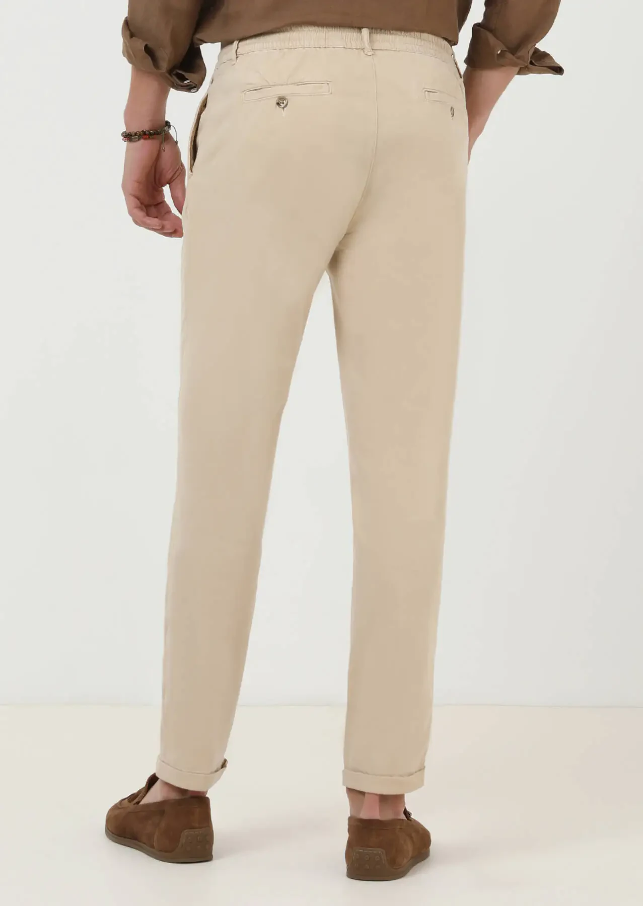 Beige Weaving Jogging Fit Casual Cotton Blended Trousers
