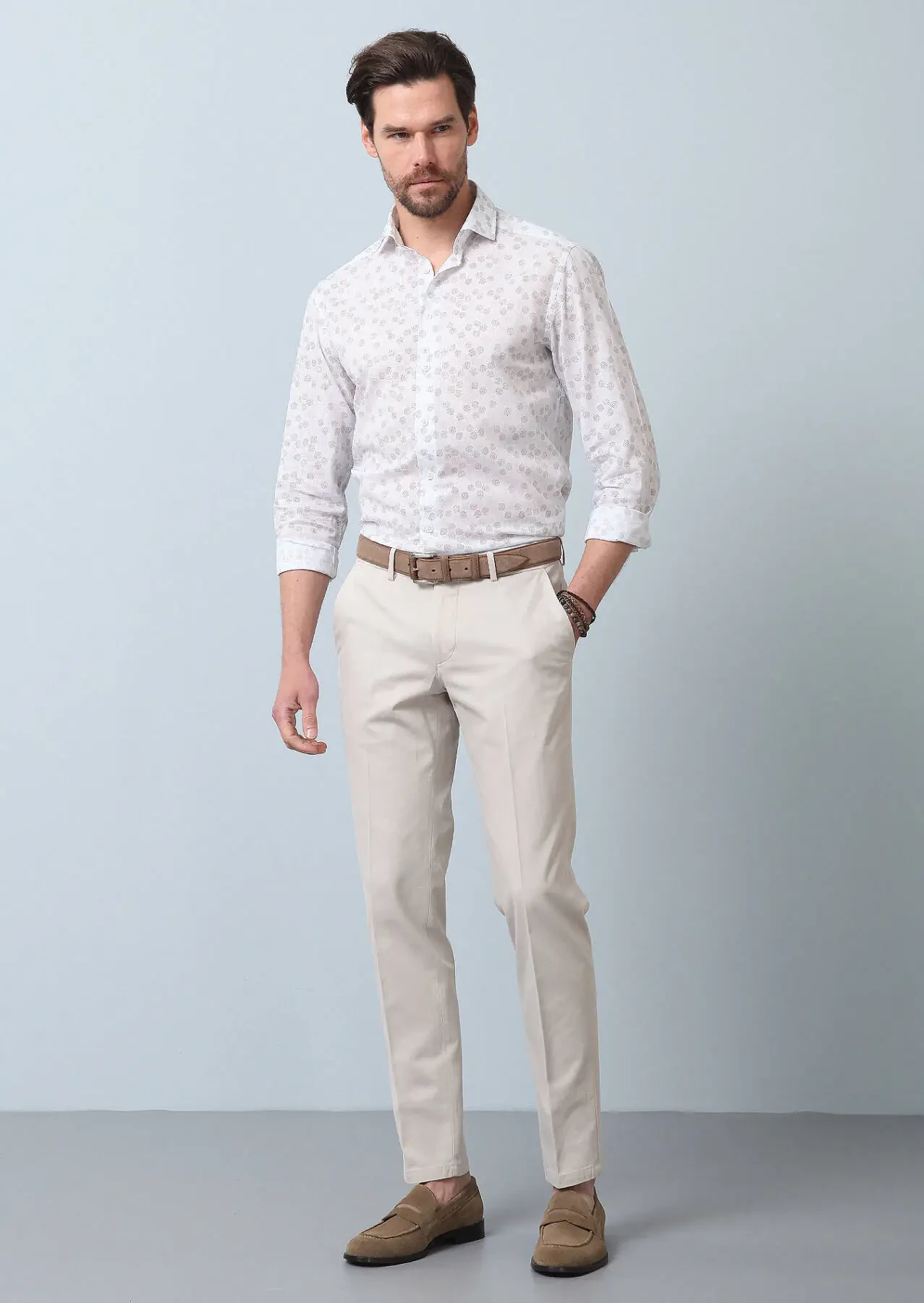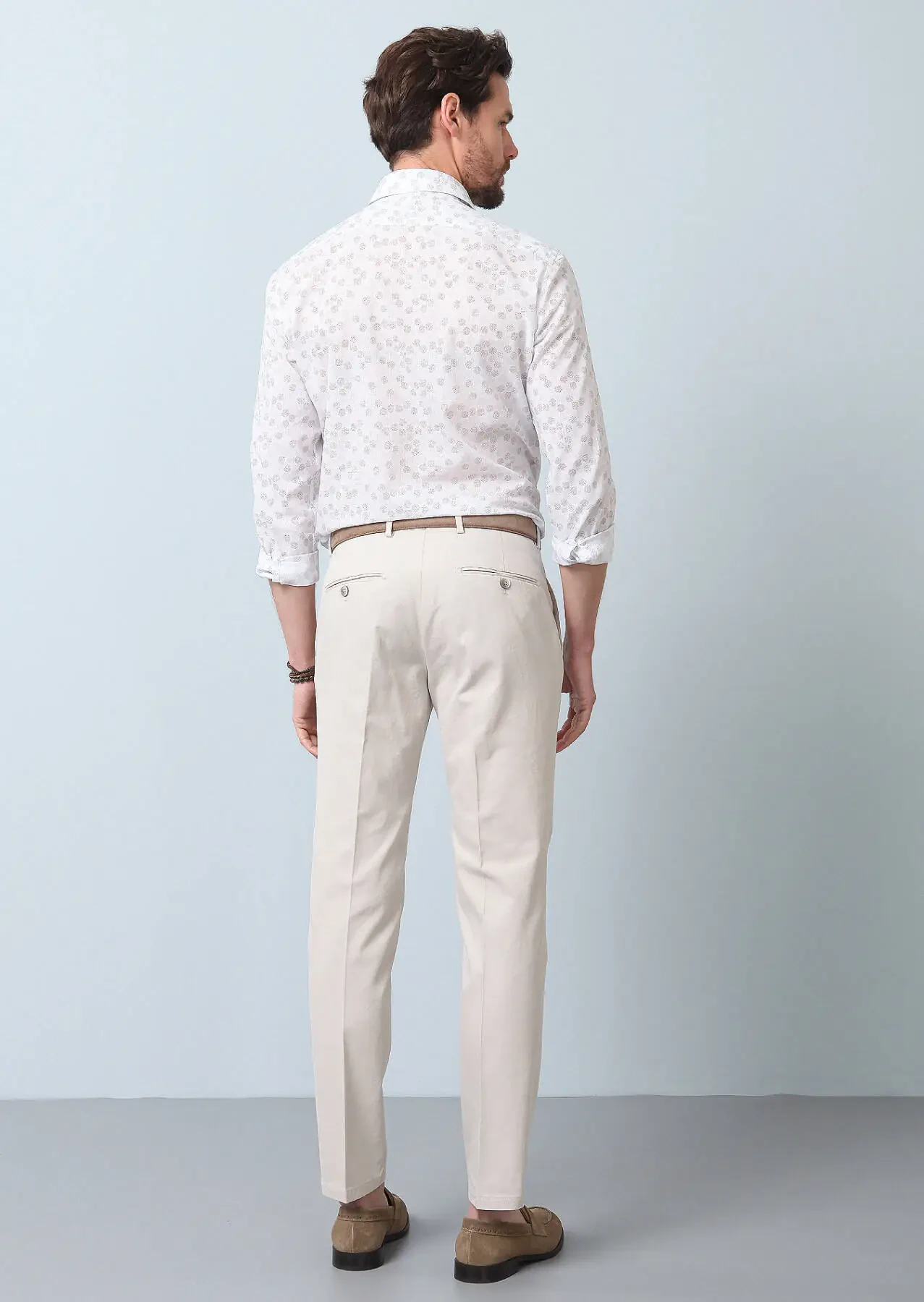 Beige Weaving Regular Fit Smart Casual Cotton Blended Trousers
