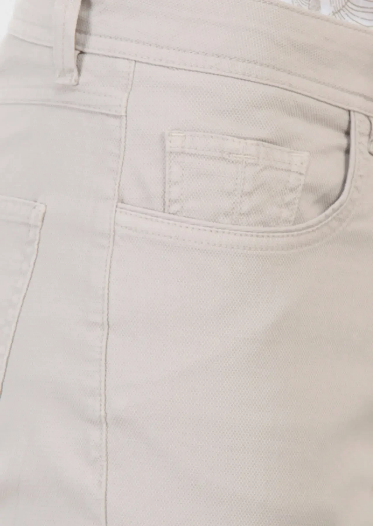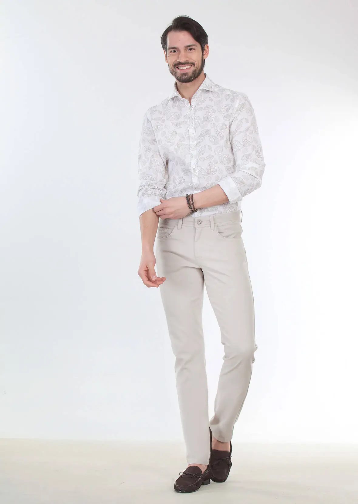 Beige Weaving Slim Fit Casual Cotton Blended Trousers