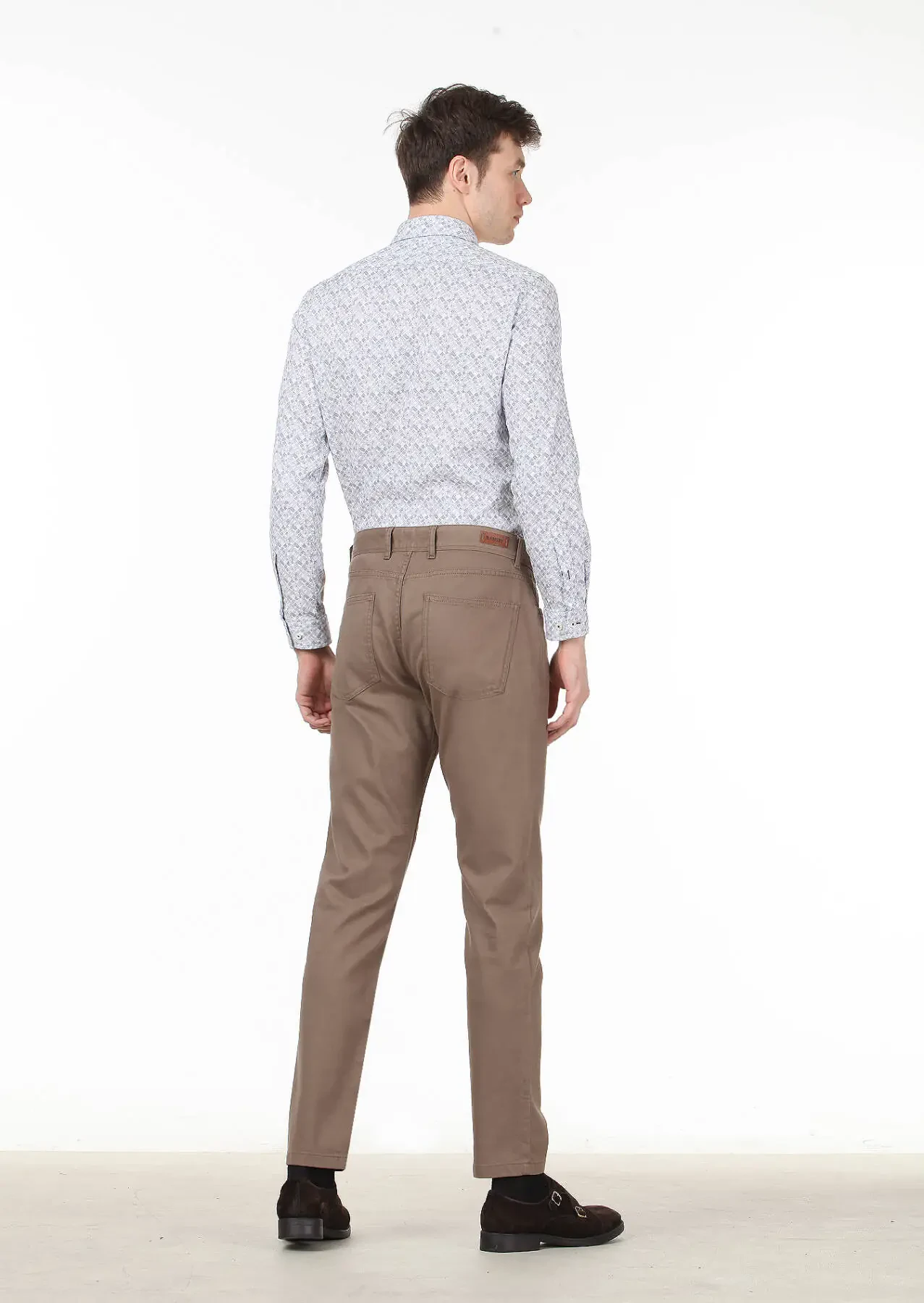 Beige Weaving Slim Fit Casual Cotton Blended Trousers