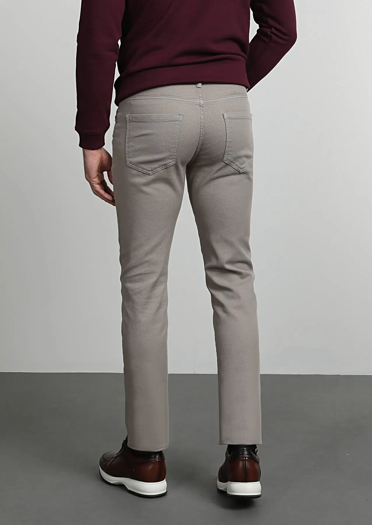Beige Weaving Slim Fit Casual Cotton Blended Trousers