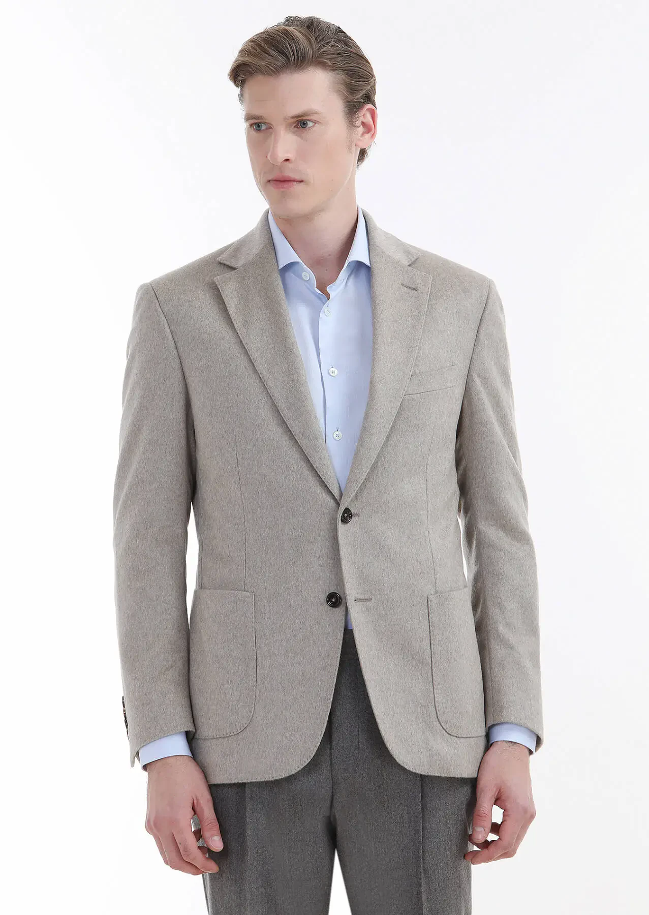 Beige Plain Zeroweight Slim Fit 100% Cashmire Jacket