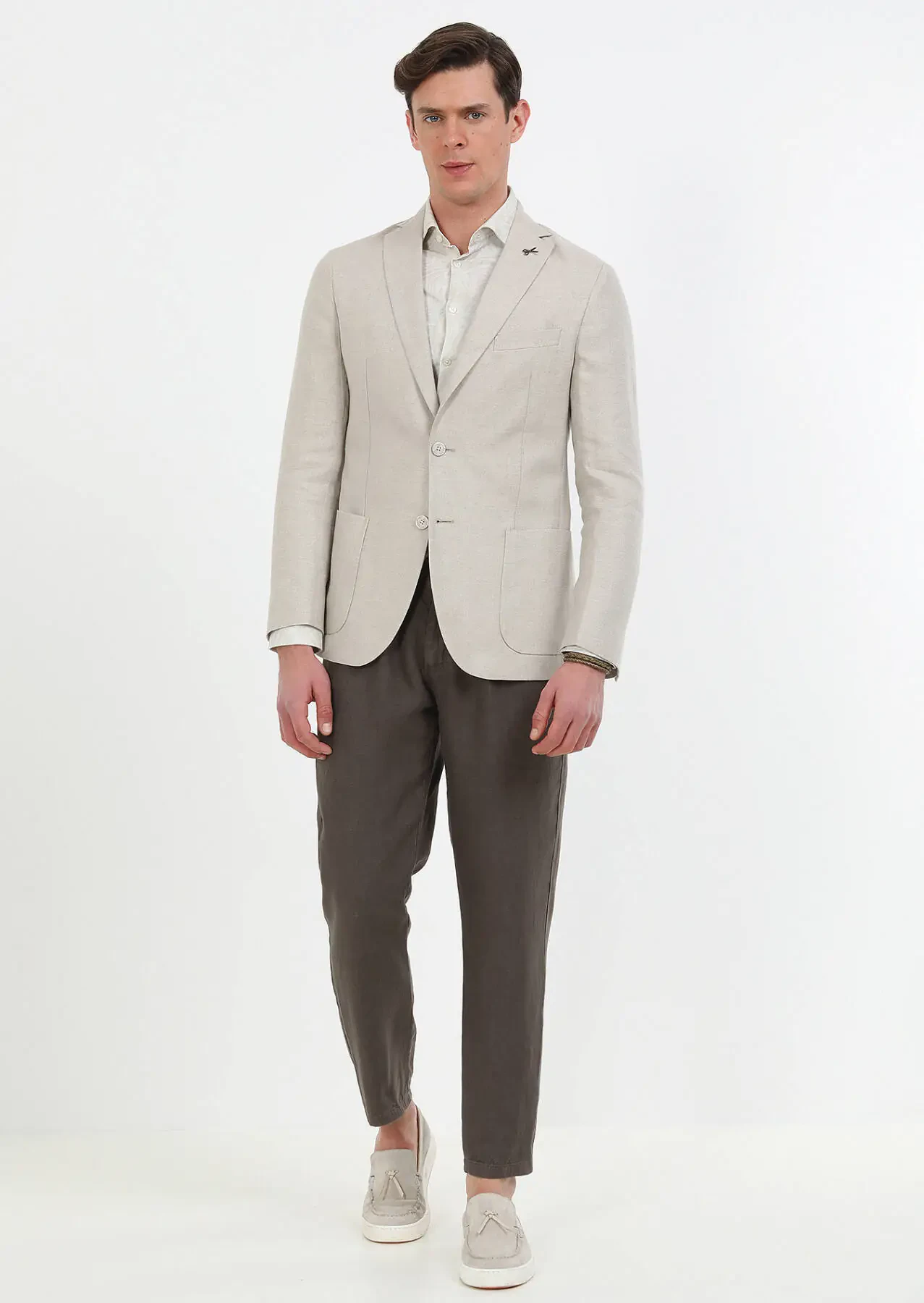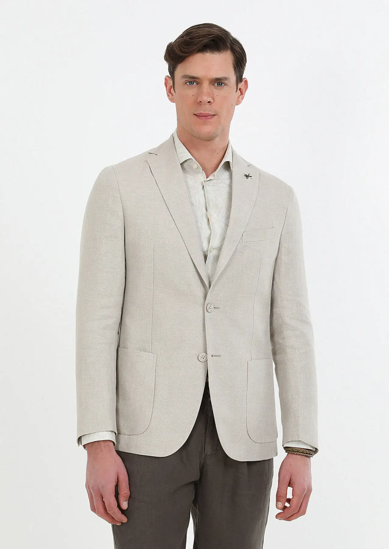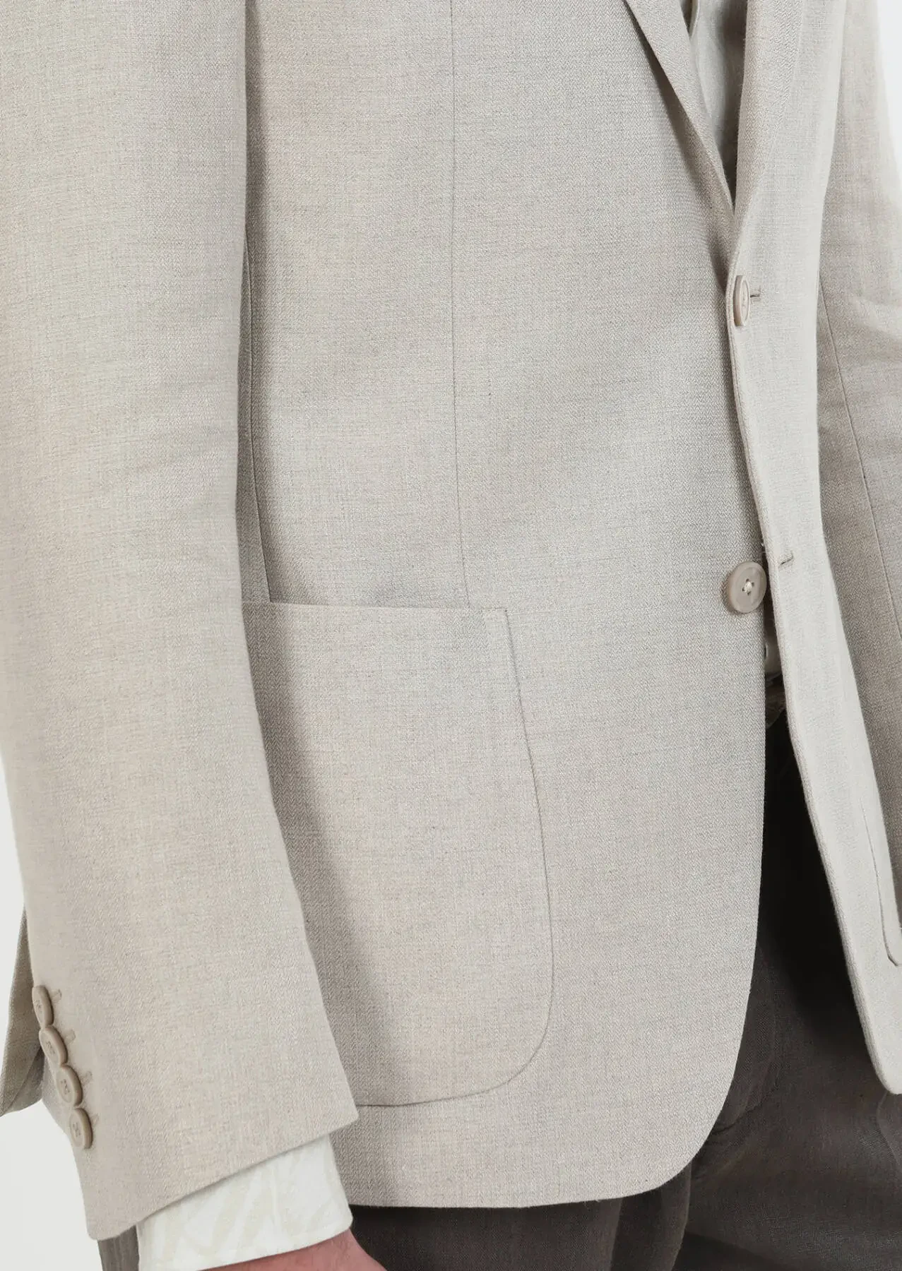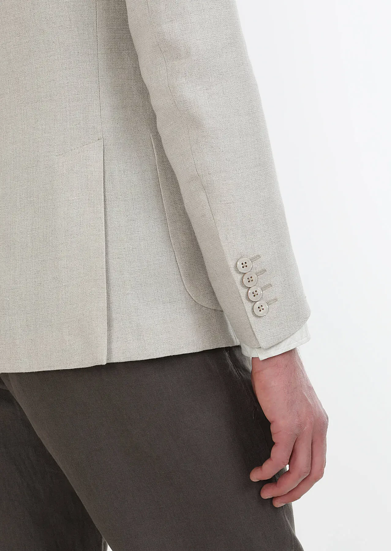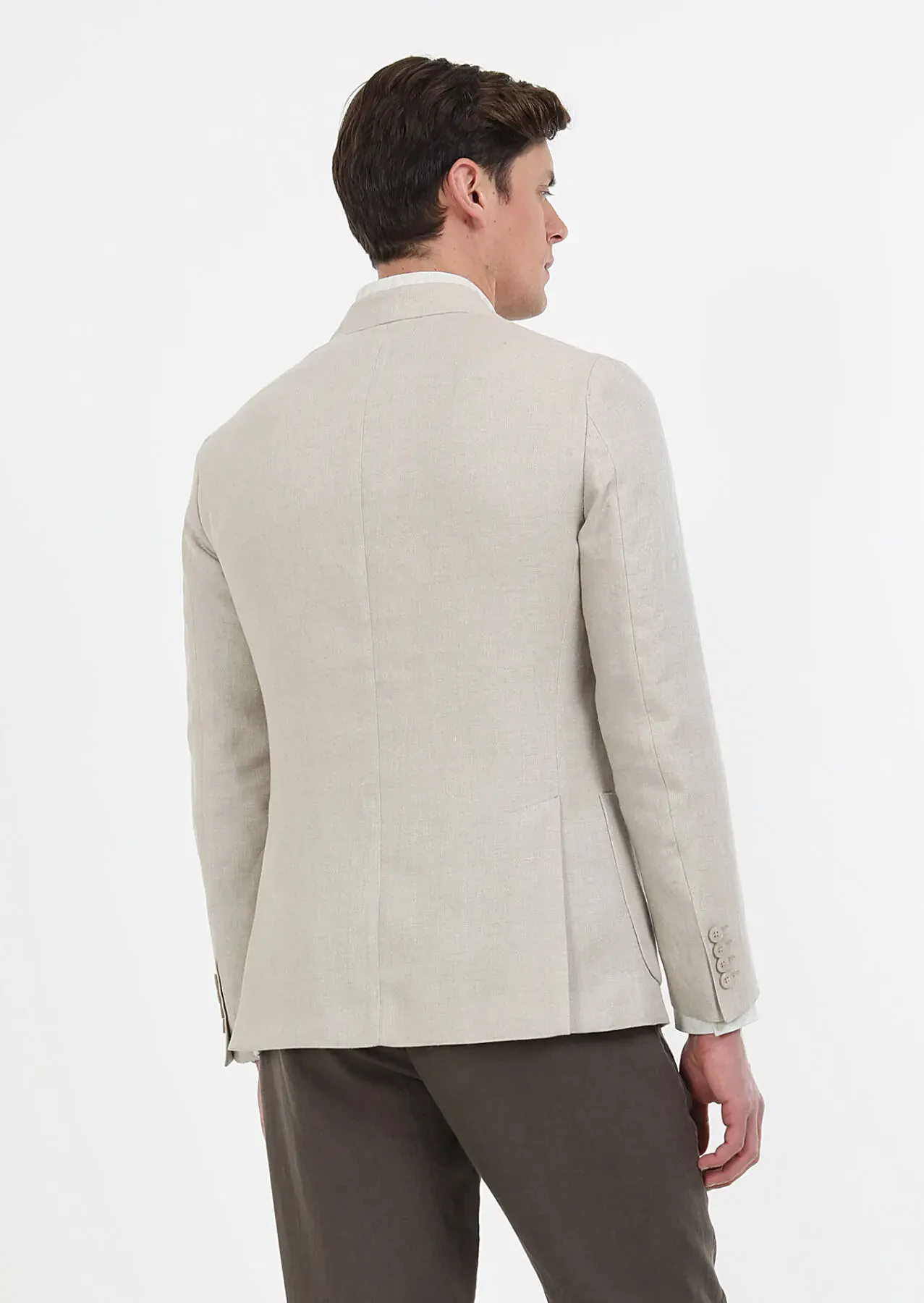 Beige Plain Zeroweight Slim Fit 100% Linen Jacket