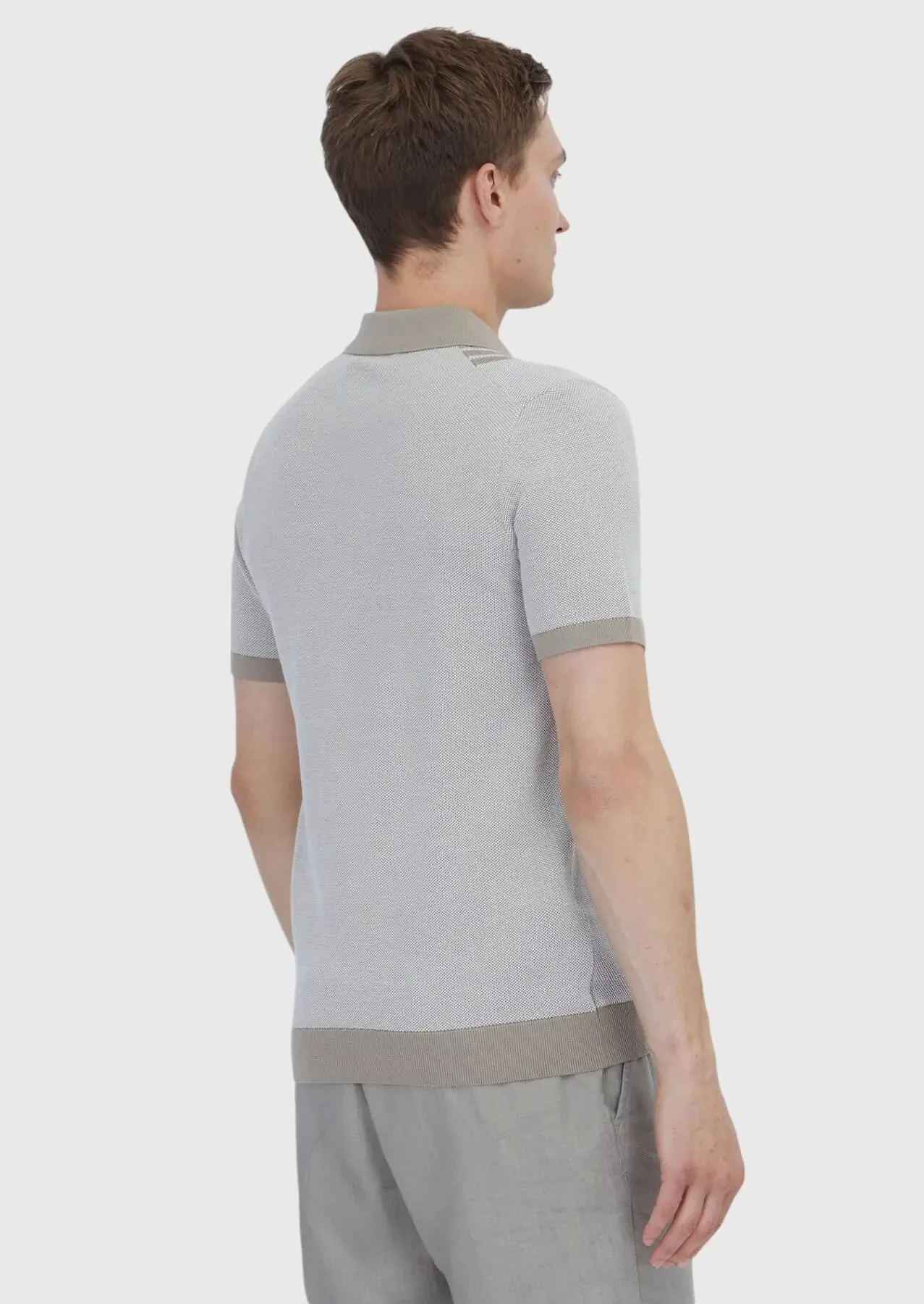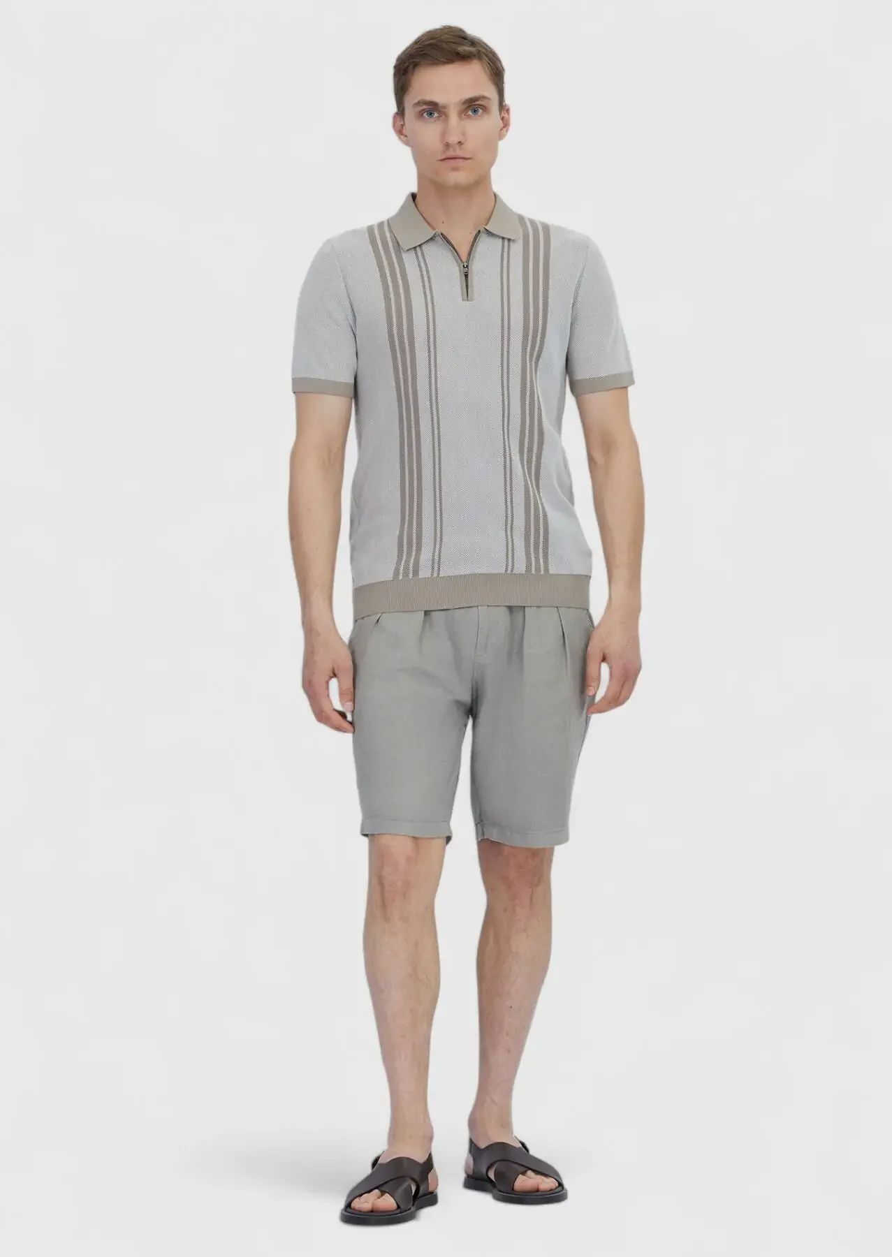 Bej Polo Yaka Çizgili Pamuk Karışımlı Triko - 1