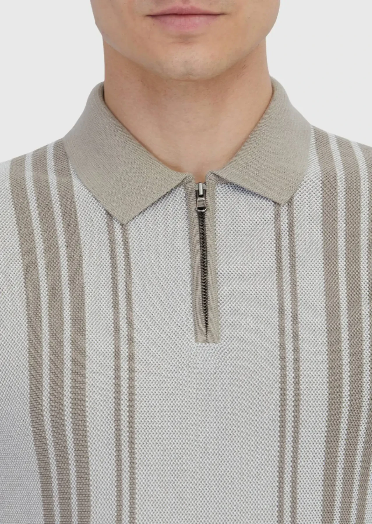 Bej Polo Yaka Çizgili Pamuk Karışımlı Triko