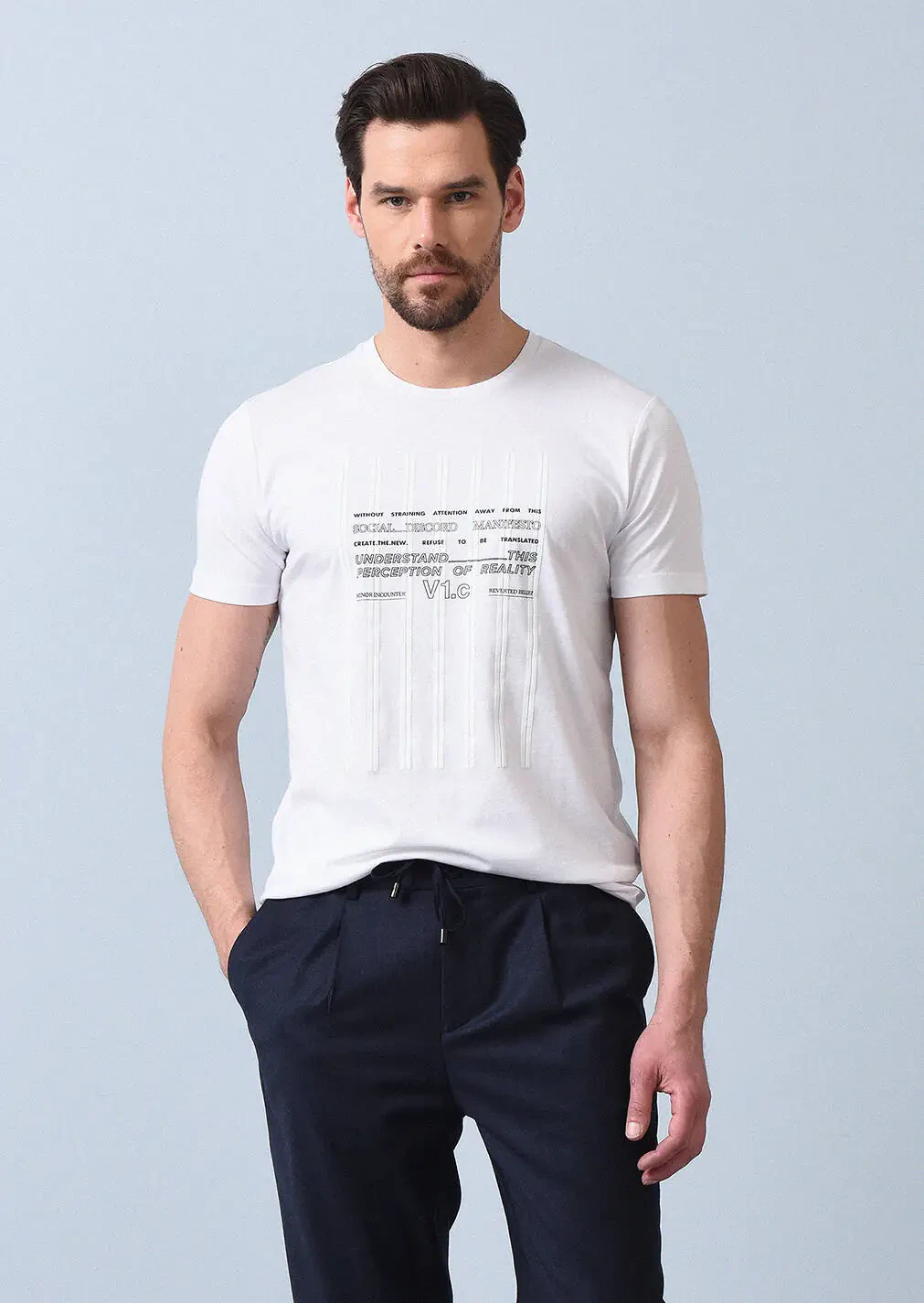 Beyaz Baskılı %100 Pamuk T-Shirt