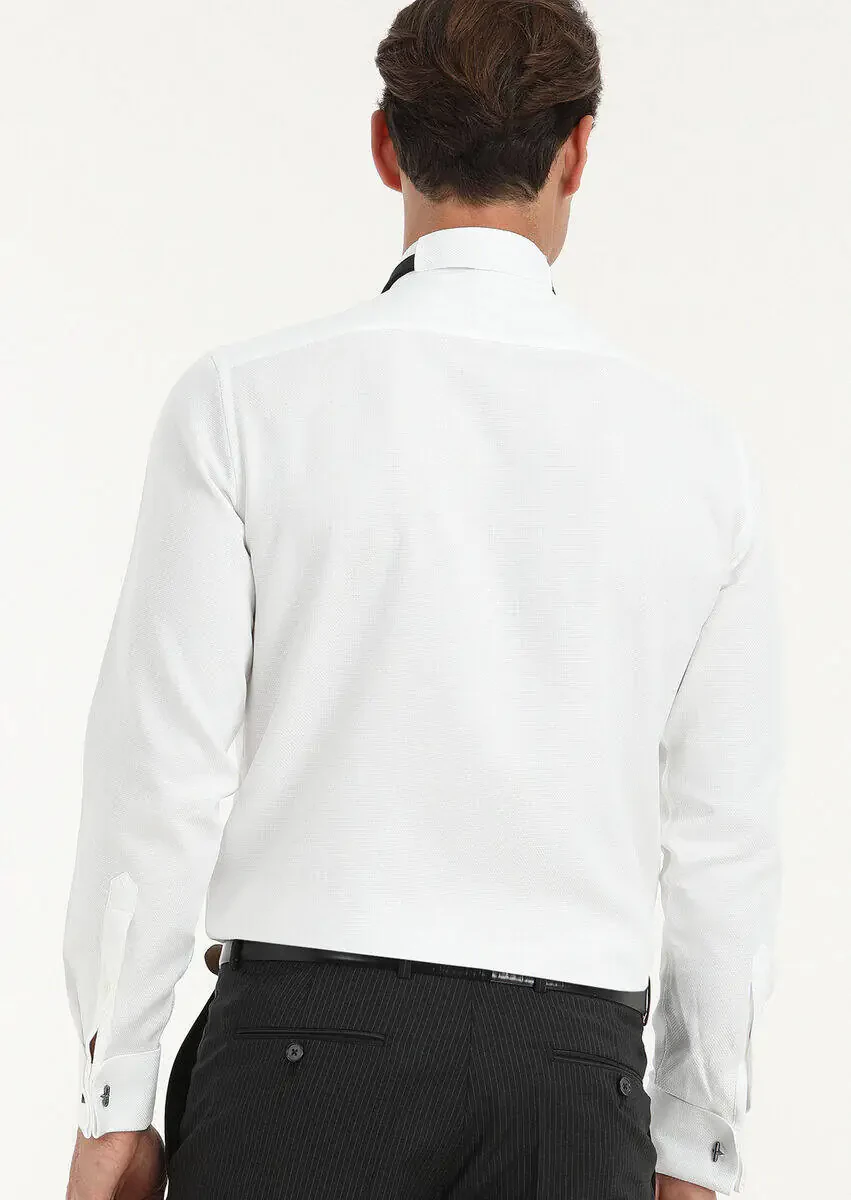 Beyaz Desenli Regular Fit Duble Manşet Ata Yaka Smokin Gömlek