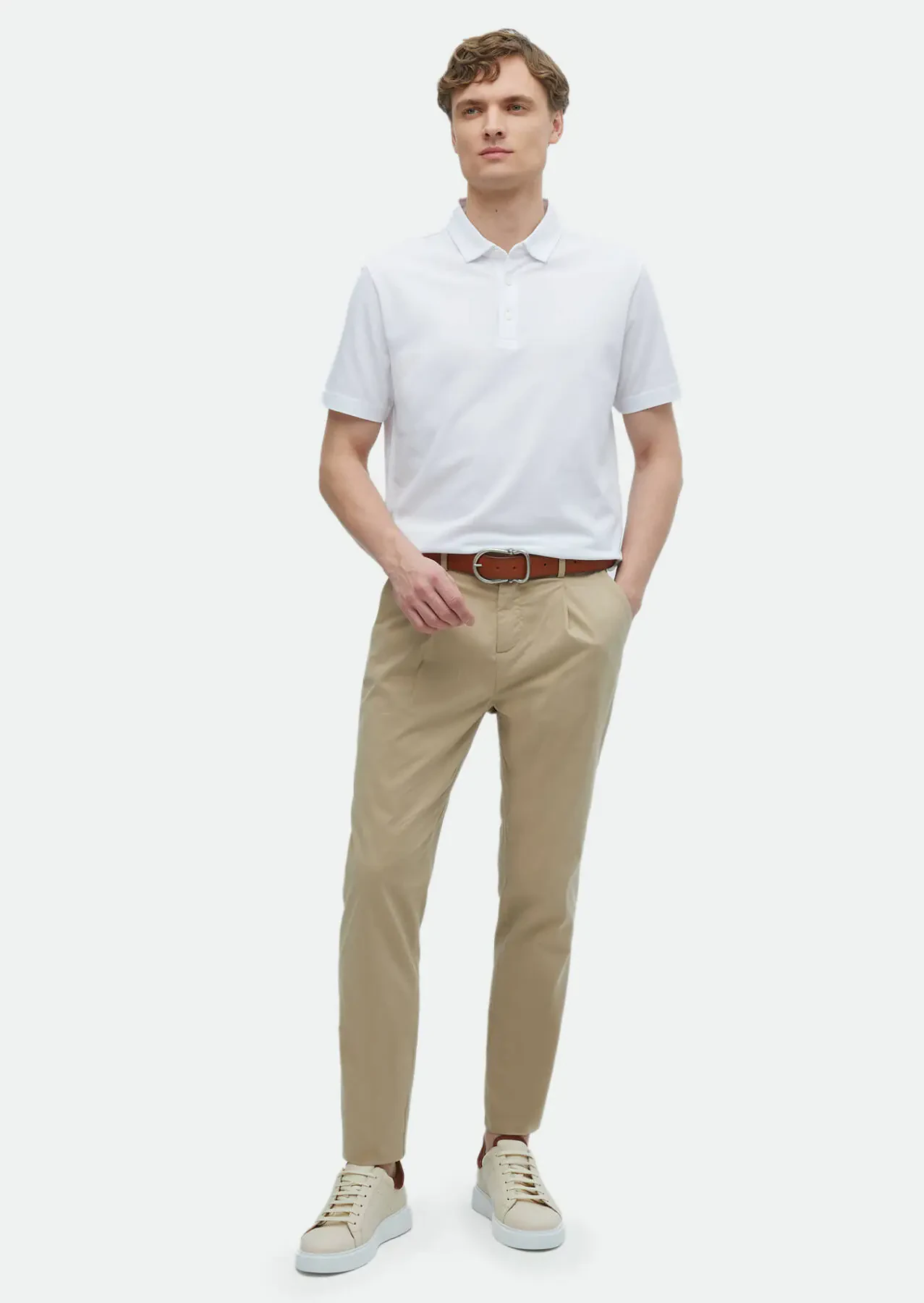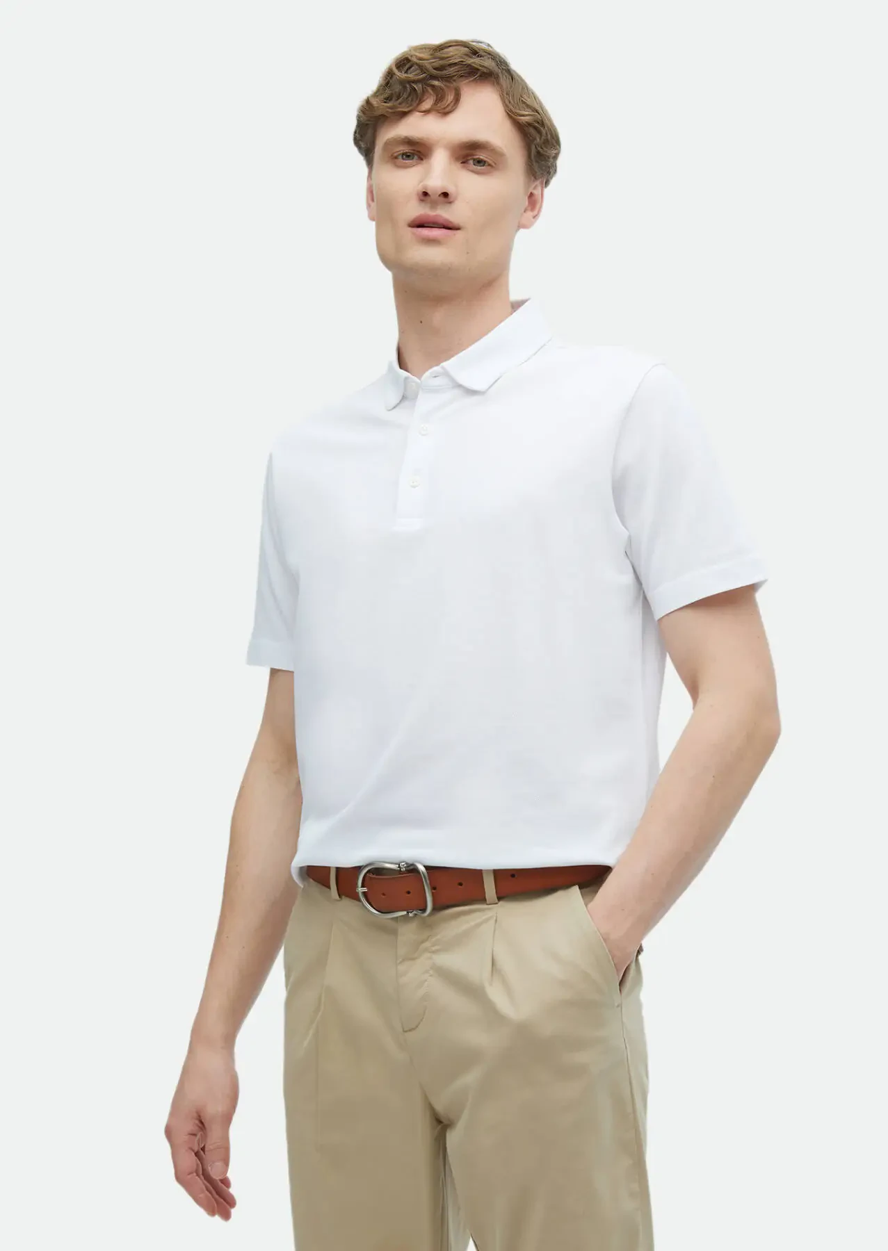 Beyaz Düz Polo Yaka %100 Pamuk T-Shirt