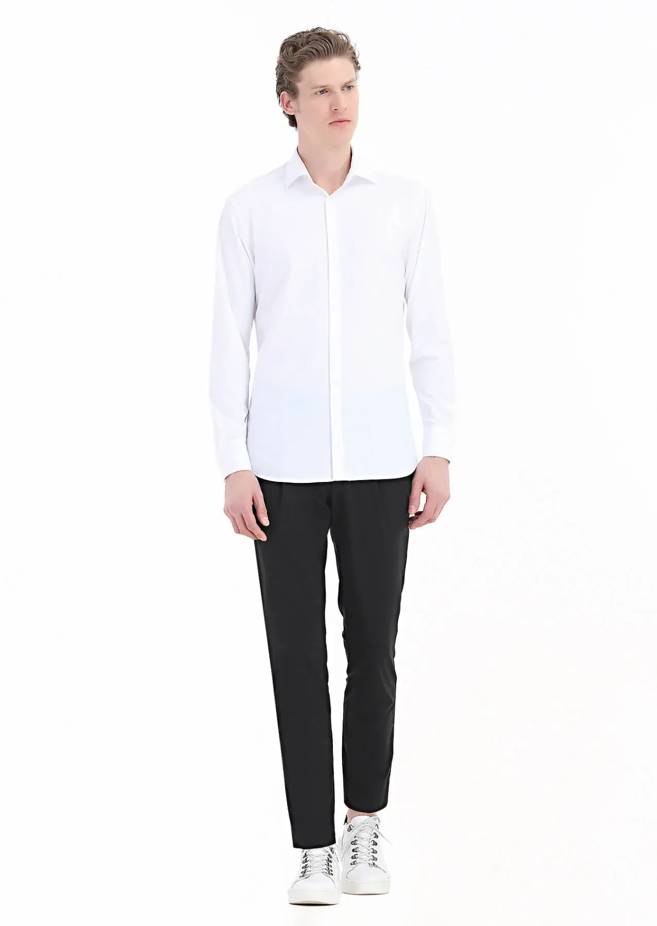 Beyaz Düz Regular Fit Dokuma Klasik Gömlek