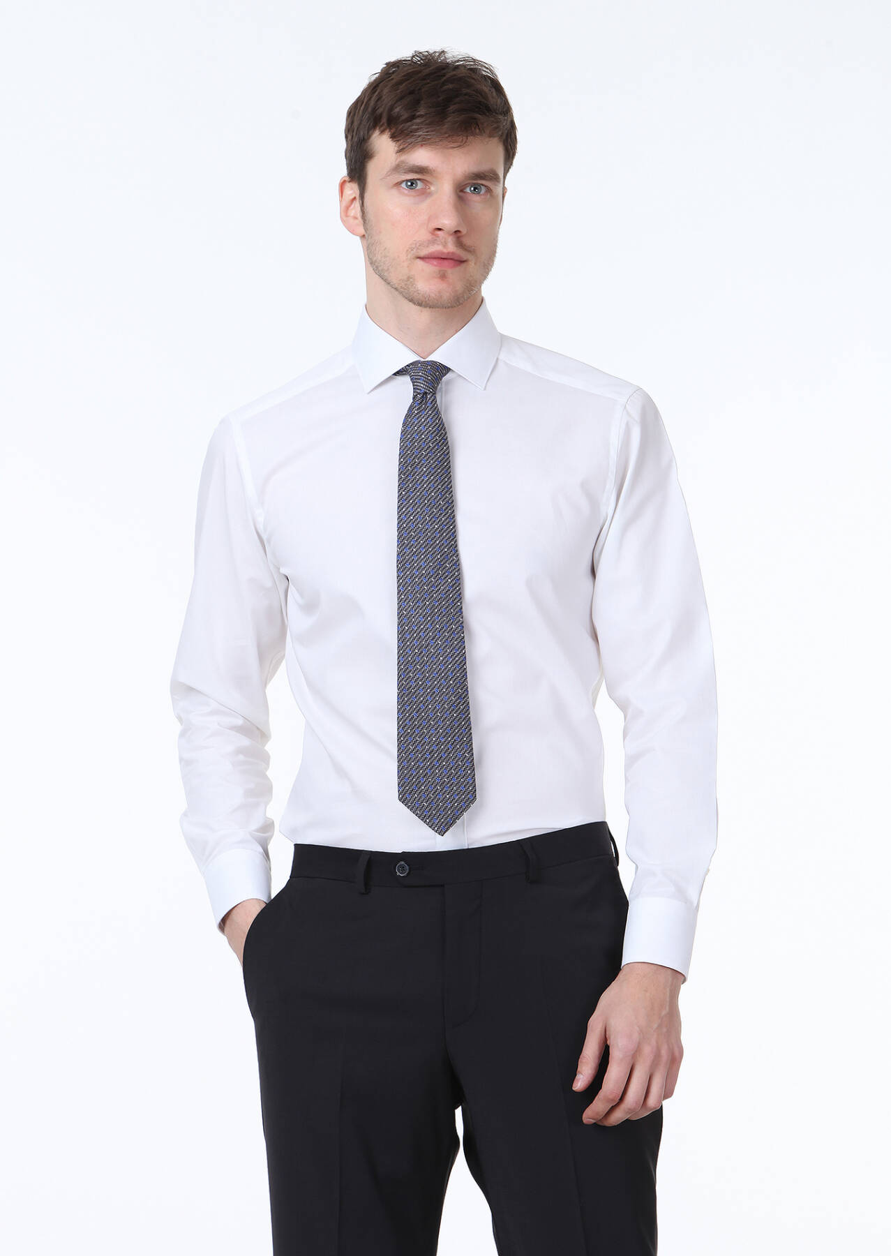 Beyaz Düz Regular Fit Uzun Dokuma Klasik %100 Pamuk Gömlek