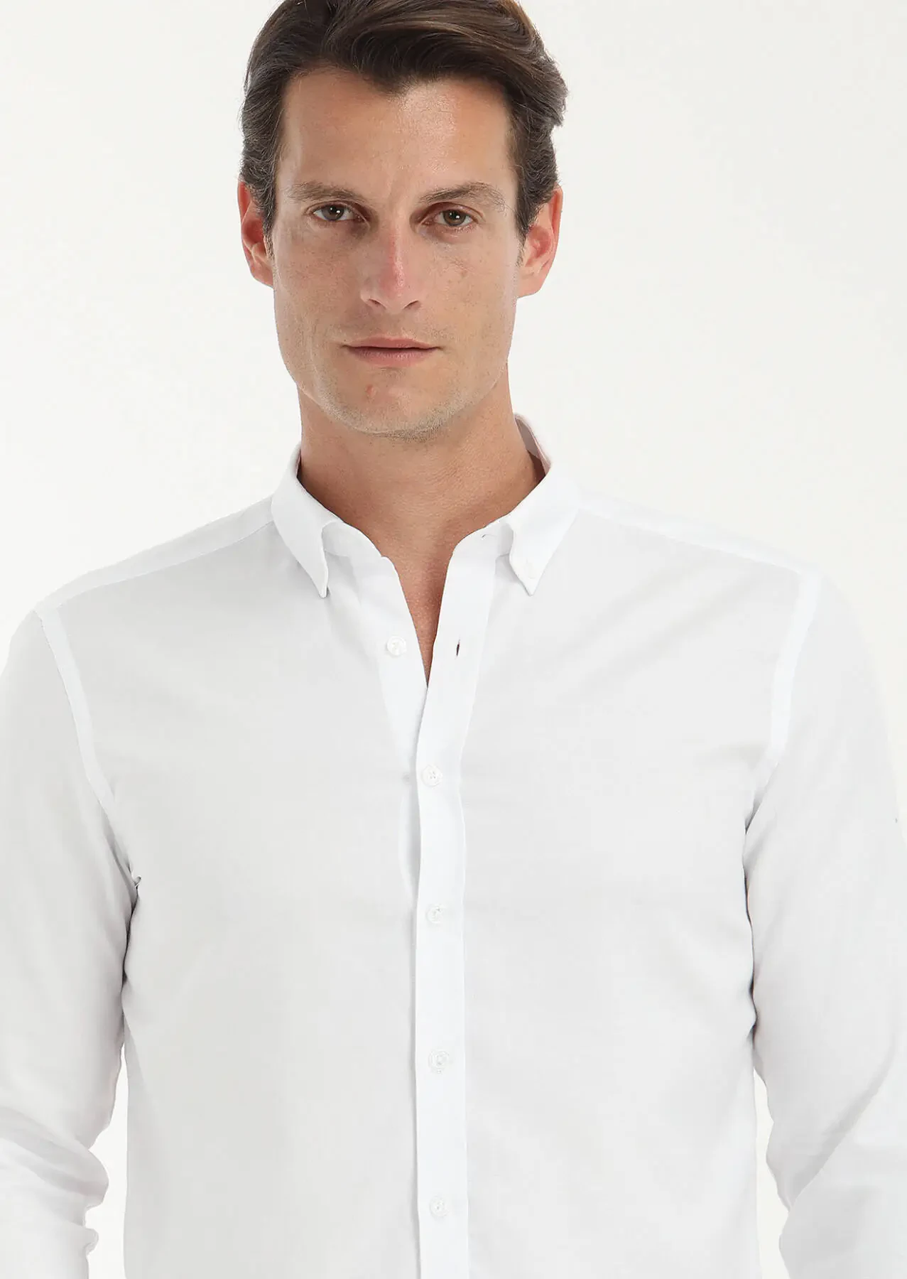 Beyaz Düz Slim Fit Dokuma Casual %100 Pamuk Gömlek
