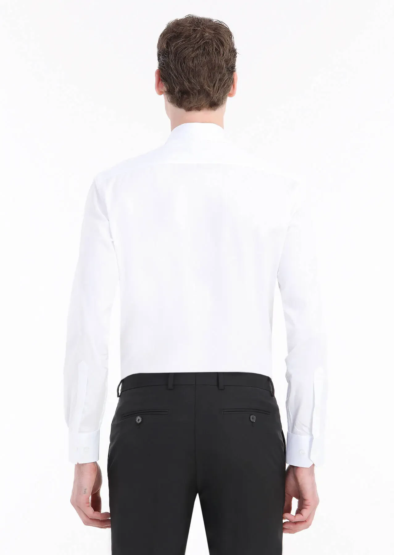 Beyaz Düz Slim Fit Dokuma Klasik %100 Pamuk Gömlek