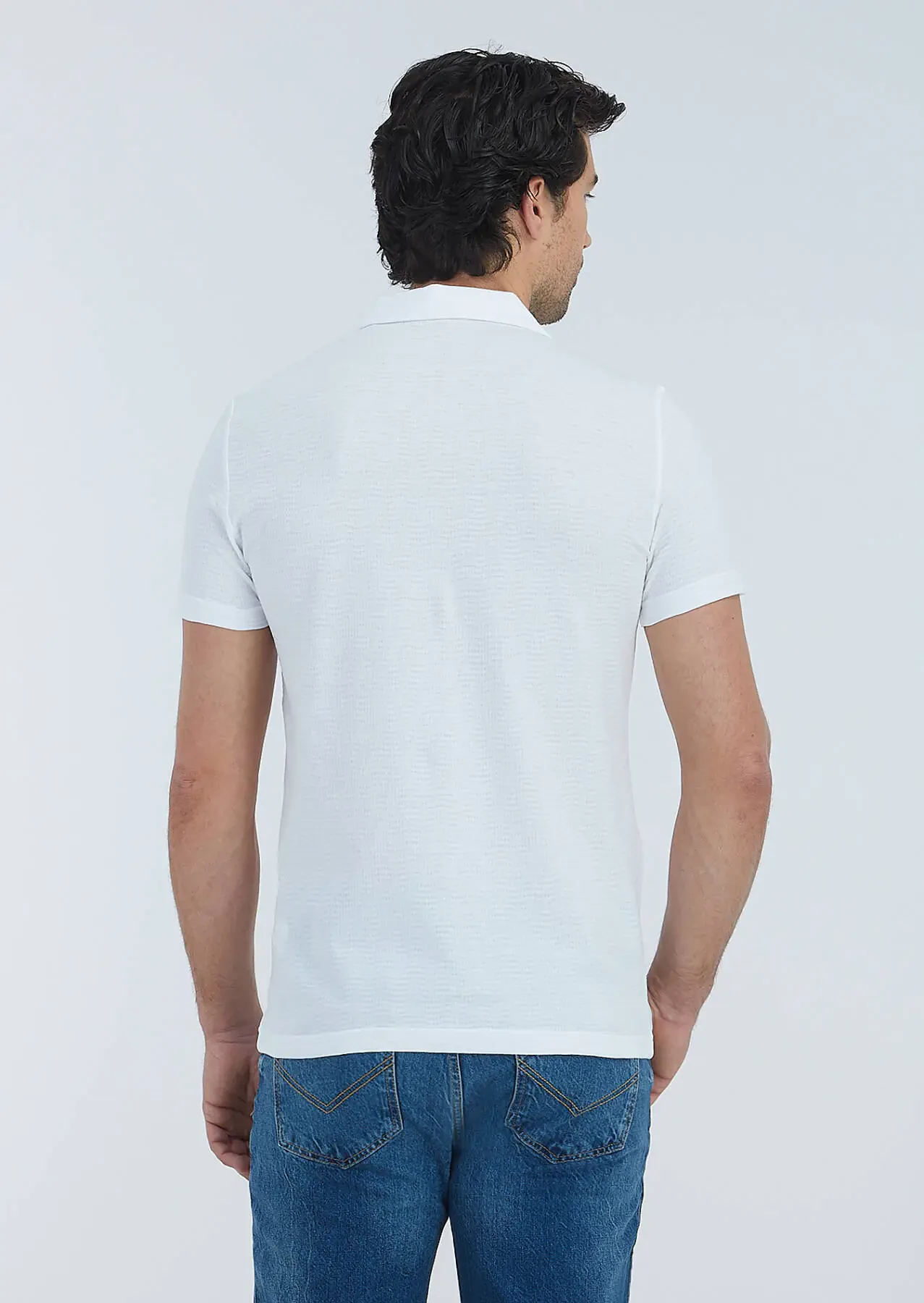 Beyaz Jakarlı Küba Yaka %100 Pamuk T-Shirt