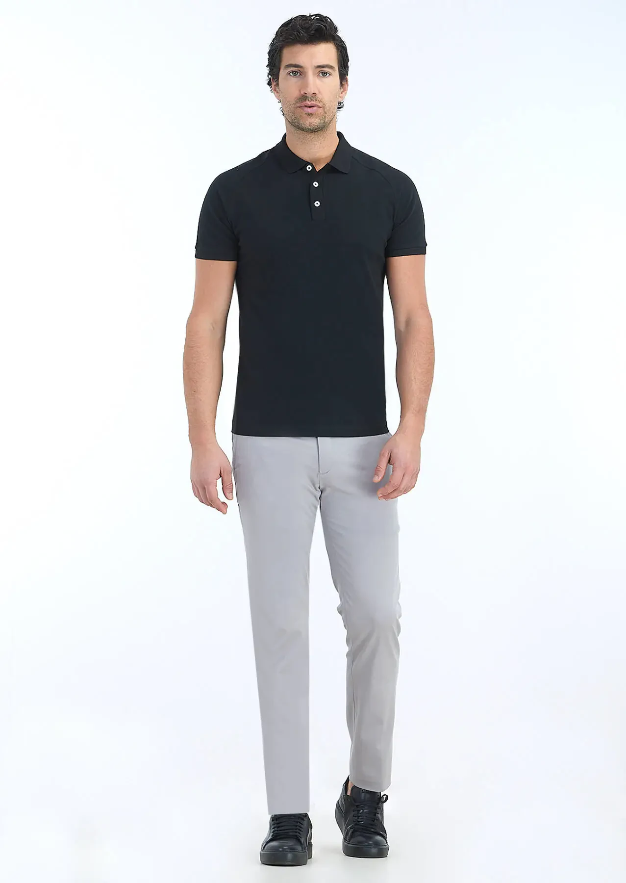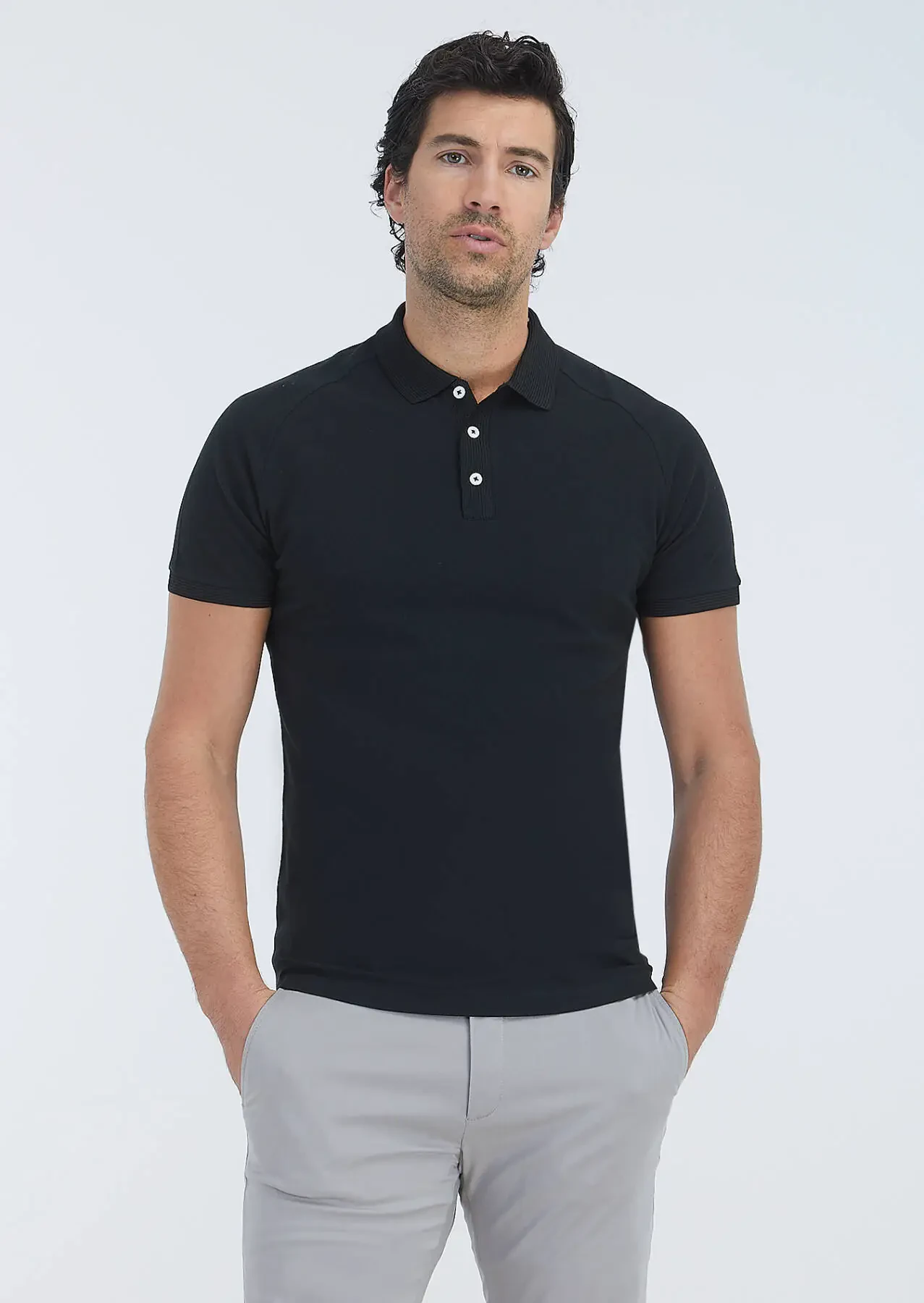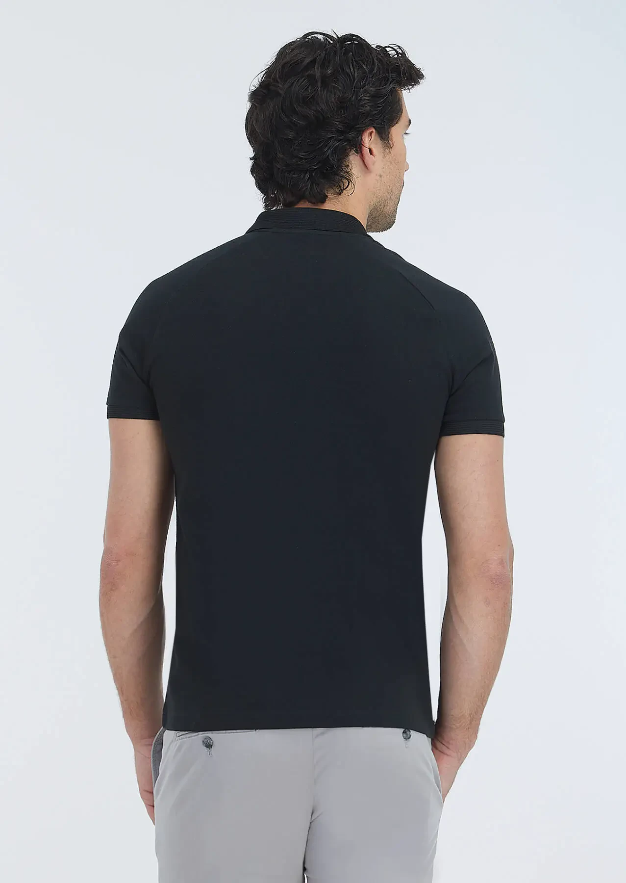Black Jacquard Polo Neck 100% Cotton T-Shirt