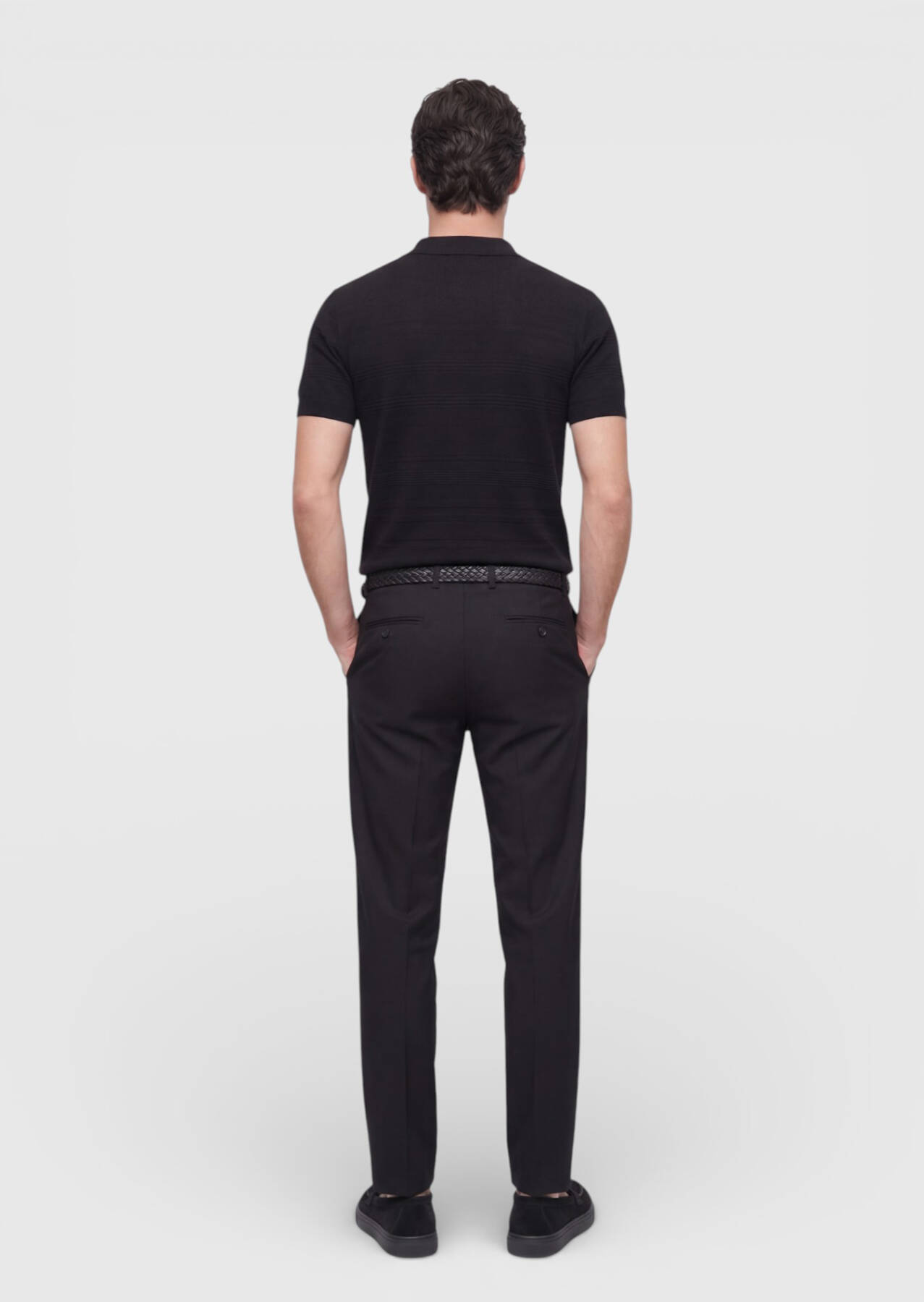 It is made of linen blended fabrics with a knitted effect. It is a piece that combines elegance and trends with its special collar detail and breathable texture.