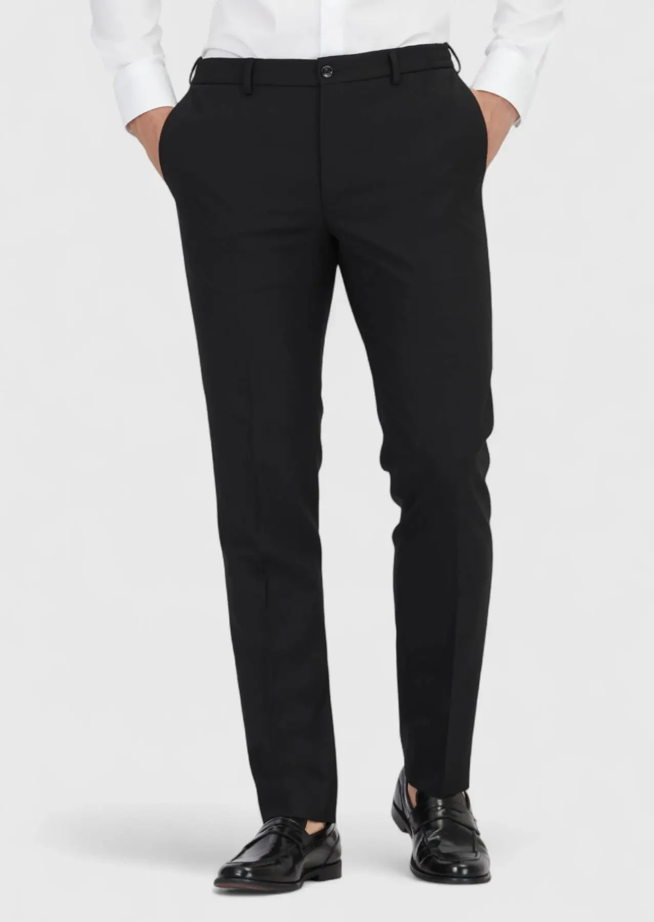 Black Material Comfort Fit Classical 100% Wool Trousers