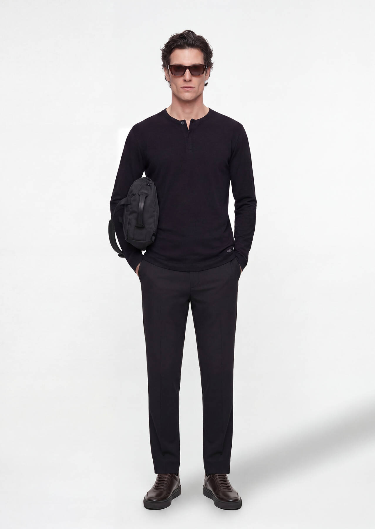 Model: Height: 187 cm, Chest: 98 cm, Waist: 78 cm, Hips: 96 cm, Size: 32