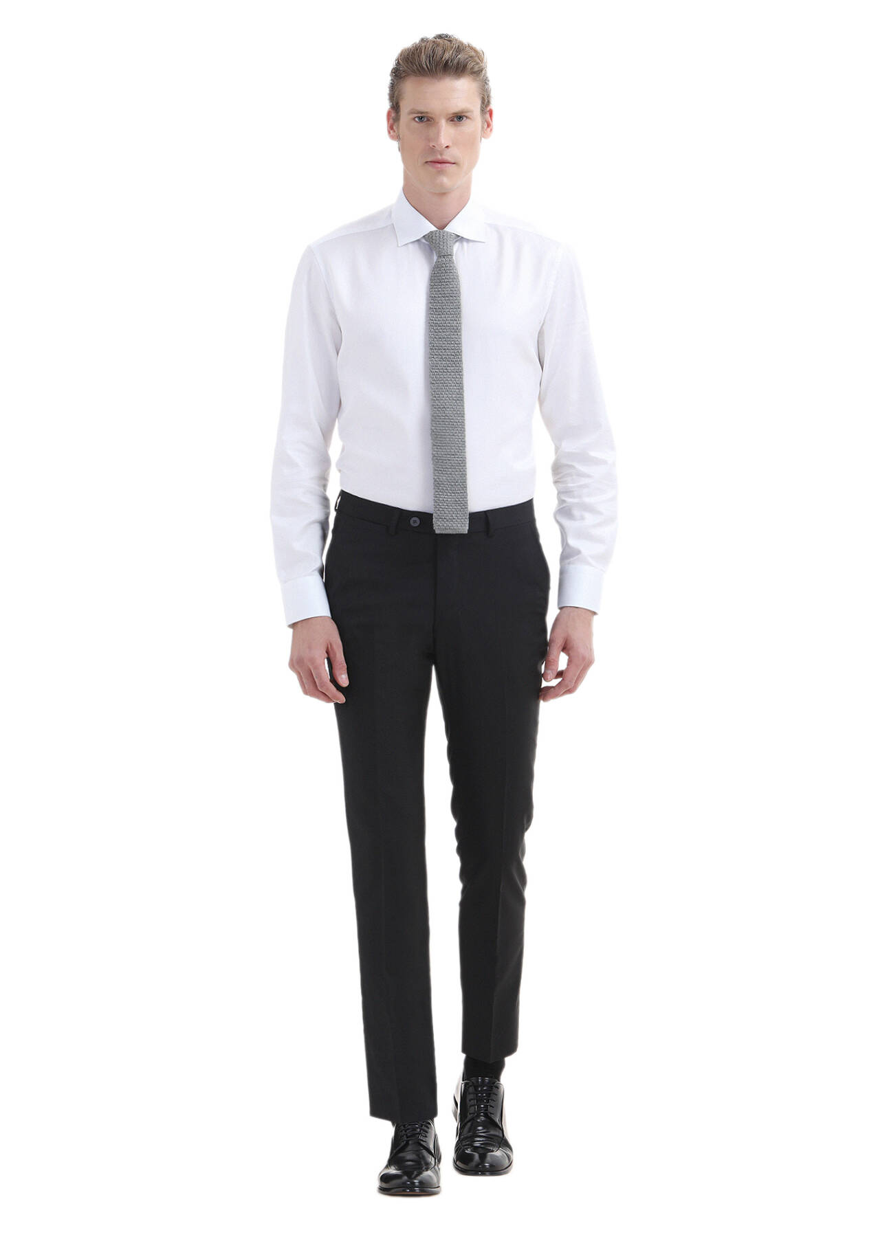 Black Material Slim Fit Classical 100% Wool Trousers