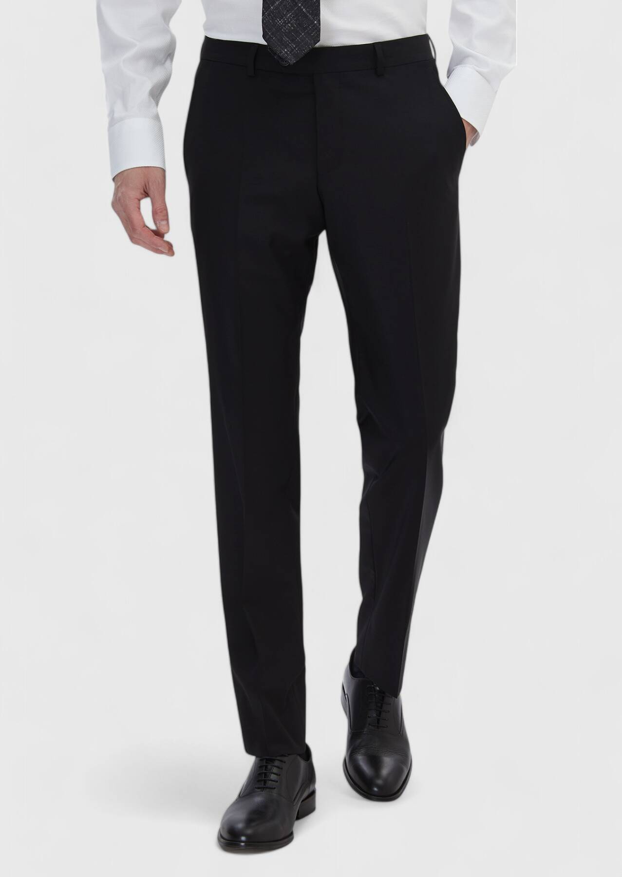 Black Modern Fit Classical Wool Blended Trousers