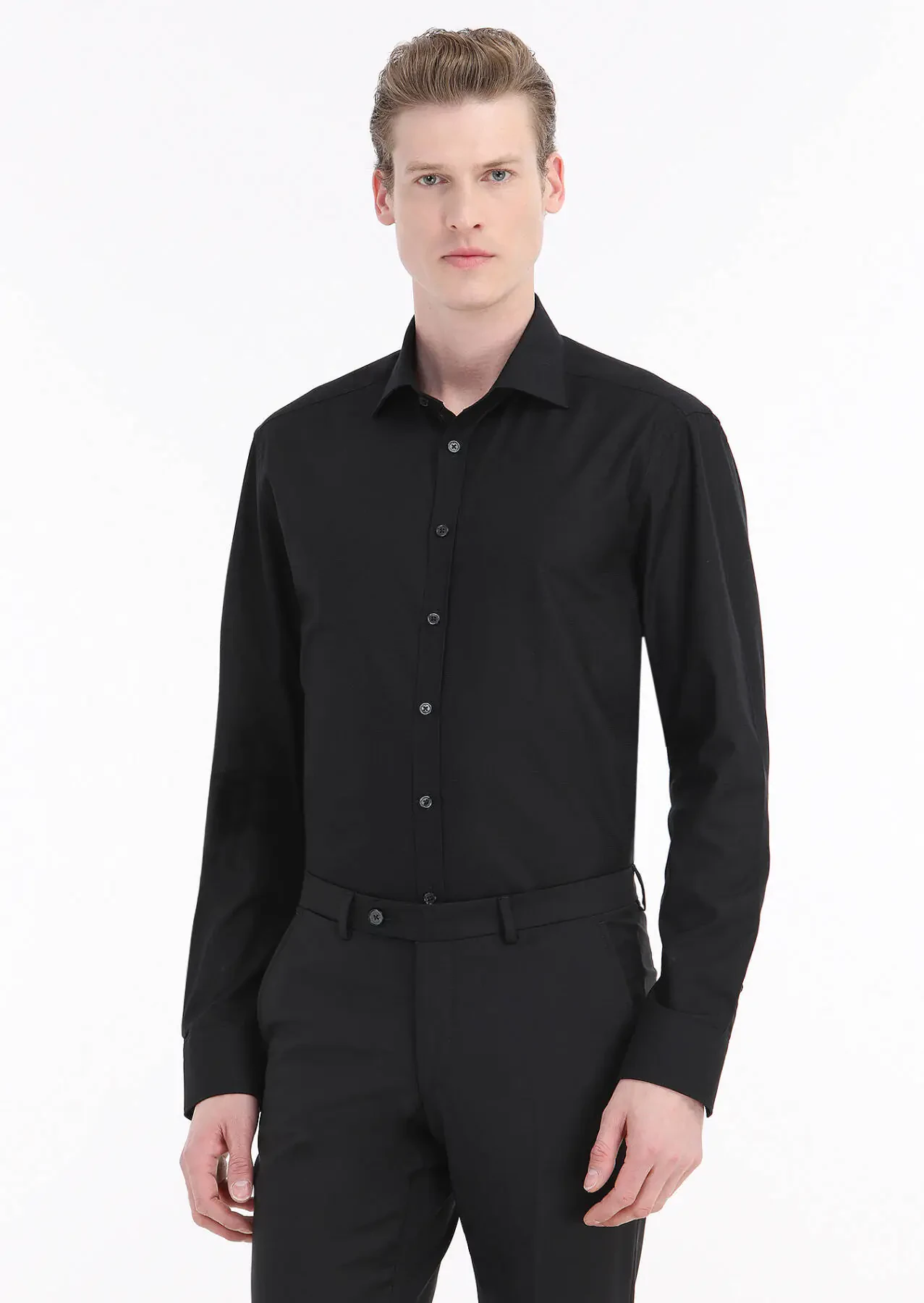 Black Patterned Regular Fit Weaving Classical 100% Cotton Shirt