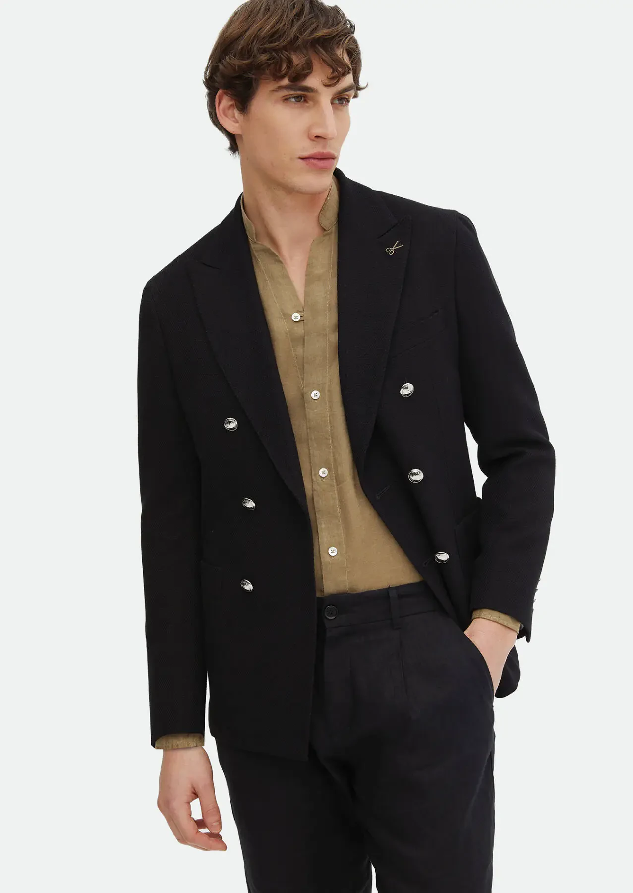 Model: Height: 188 cm, Chest: 96 cm, Waist: 81 cm, Hips: 93 cm, Size: 48