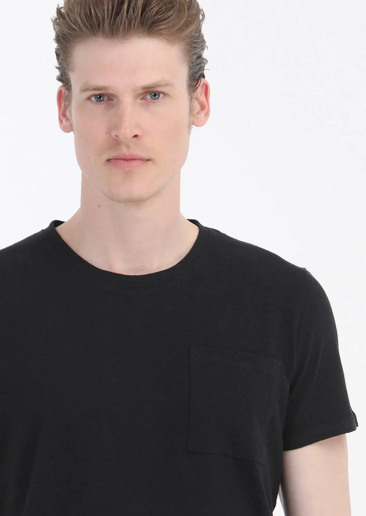 Black Plain Crew Neck 100% Linen T-Shirt