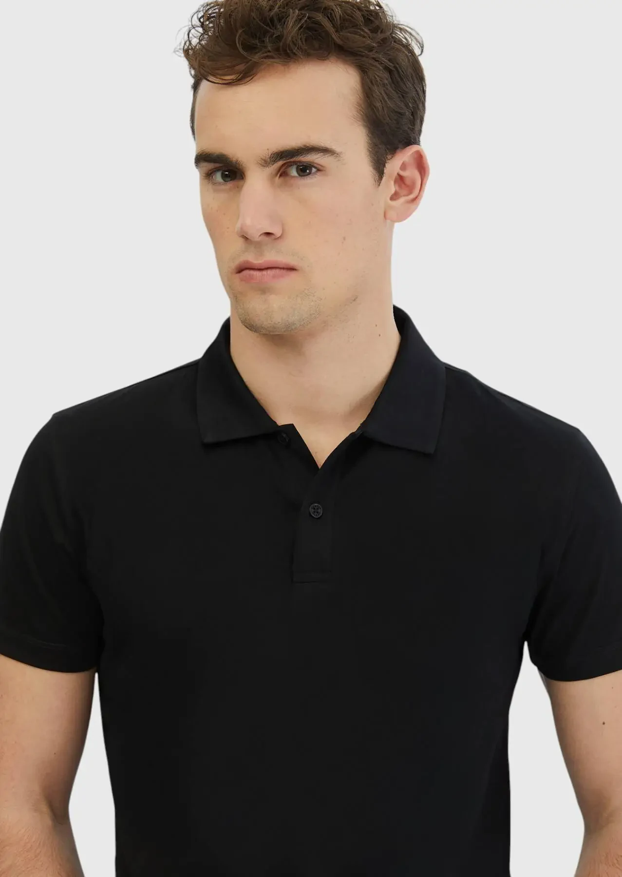 Black Plain Polo Neck 100% Cotton T-Shirt